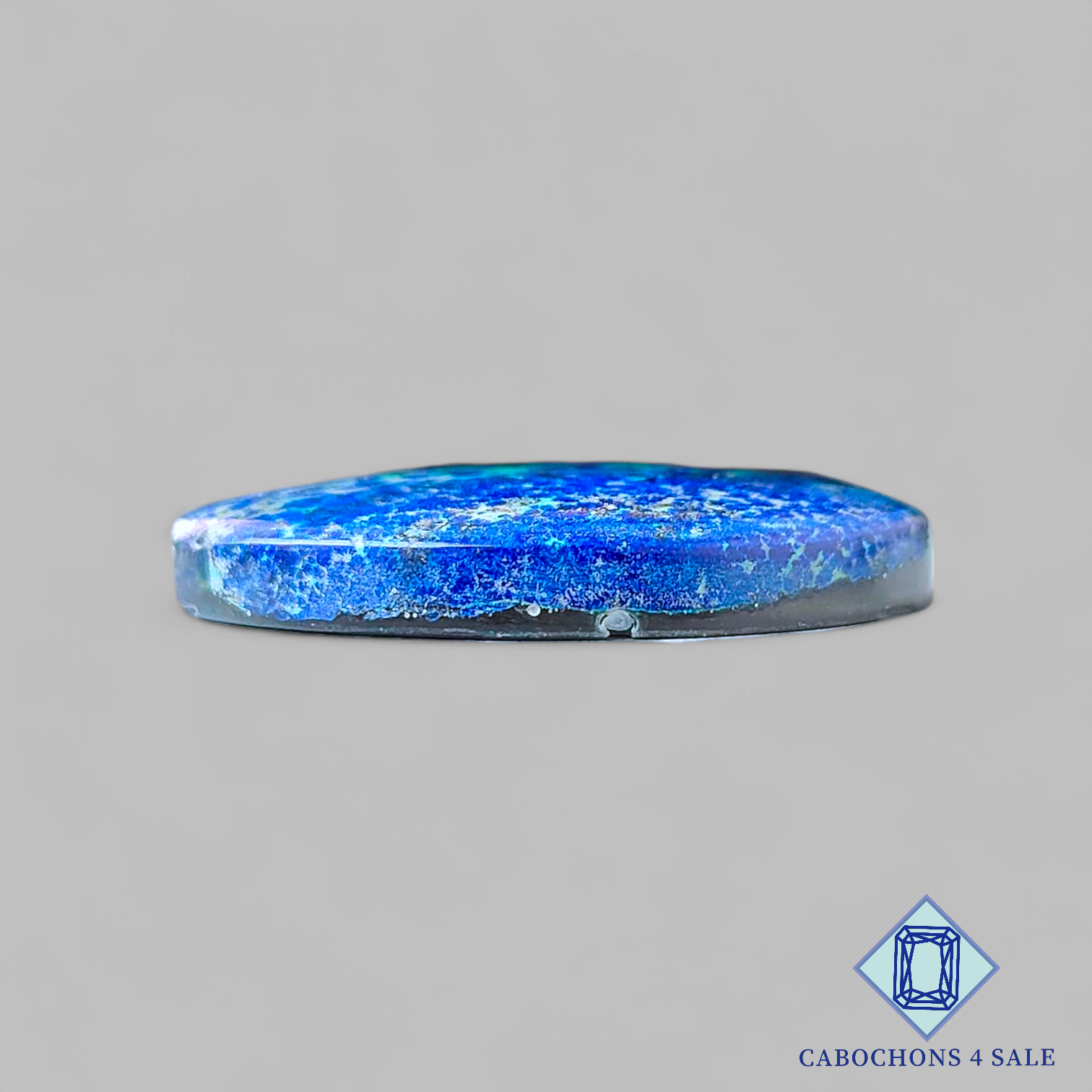 Swipe images to see stone with Dimension chart. This is a Blue Bird Azurite gemstone. The Product is a natural , Oval, Opaque. Blue Bird Azurite gemstone in Blue color with the size of 33*24*5mm. Clarity of this Blue Bird Azurite Piece is Opaque. The Product is available exactly same shown in the picture: 1 piece Oval Cabochons Blue Bird Azurite certified for the price listed above.