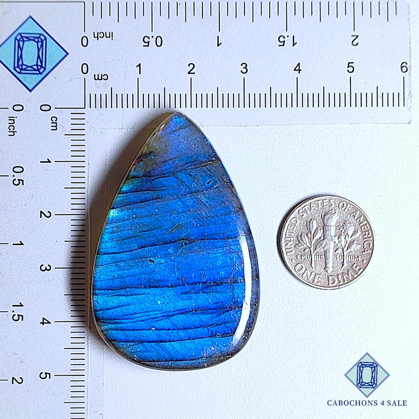 Swipe images to see stone with Dimension chart. This is a Blue Labradorite gemstone. The Product is a natural, Pear, Translucent. Blue Labradorite gemstone in Blue color with the size of 47*31*8mm. Clarity of this Blue Labradorite Piece is Translucent. The Product is available exactly same shown in the picture: 1 piece Pear Cabochons Blue Labradorite certified for the price listed above.