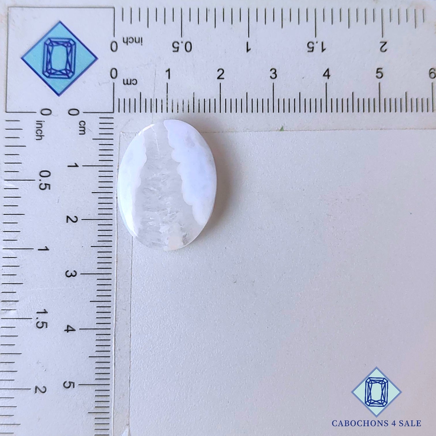 Swipe images to see stone with Dimension chart. This is a Blue Lace Agate gemstone. The Product is a natural , Oval, Opaque. Blue Lace Agate gemstone in Blue color with the size of 24*18*5mm. Clarity of this Blue Lace Agate Piece is Opaque. The Product is available exactly same shown in the picture: 1 piece Oval Cabochons Blue Lace Agate certified for the price listed above.