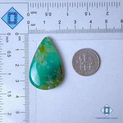 Swipe images to see stone with Dimension chart. This is a Chrysoprase gemstone. The Product is a natural , Pear, Opaque. Chrysoprase gemstone in Green color with the size of 34*21*6mm. Clarity of this Chrysoprase Piece is Opaque. The Product is available exactly same shown in the picture: 1 piece Pear Cabochons Chrysoprase certified for the price listed above.