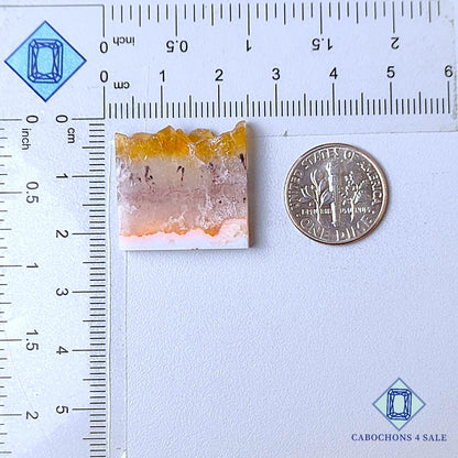Swipe images to see stone with Dimension chart. This is a Citrine gemstone. The Product is a natural, Fancy, Translucent. Citrine gemstone in Yellow color with the size of 21*22*5mm. Clarity of this Citrine Piece is Translucent. The Product is available exactly same shown in the picture: 1 piece Fancy Druzy Citrine certified for the price listed above.