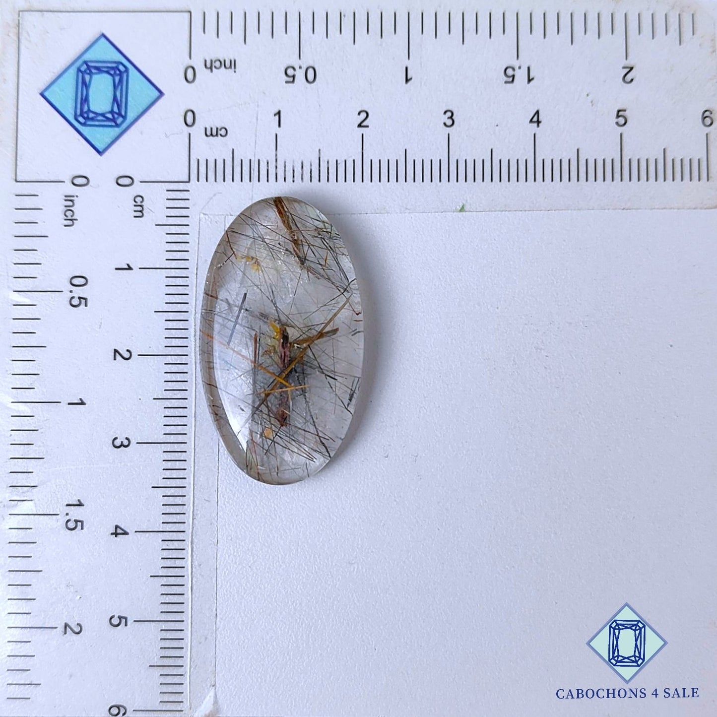 Swipe images to see stone with Dimension chart. This is a Copper with Black Rutile Quartz gemstone. The Product is a natural , Oval, Transparent. Copper with Black Rutile Quartz gemstone in Colorless color with the size of 32*18*6mm. Clarity of this Copper with Black Rutile Quartz Piece is Transparent. The Product is available exactly same shown in the picture: 1 piece Oval Cabochons Copper with Black Rutile Quartz certified for the price listed above.