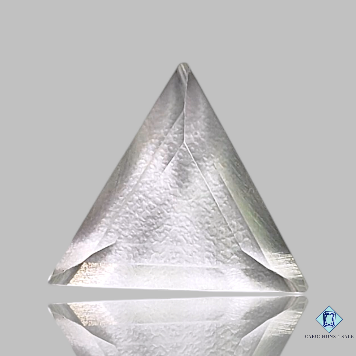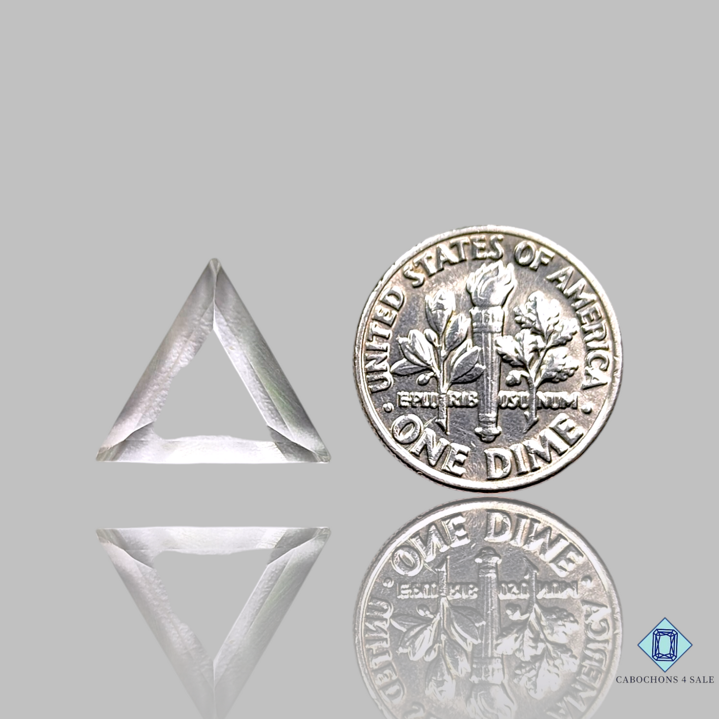 This is a crystal quartz stone. The product is a natural triangle shape step cut. Crystal Quartz in transparent color with the approx size of 15-20mm. Clarity of This Piece is transparent. The Product is sold as pictured: 1pc triangle step cut for the Price Listed.