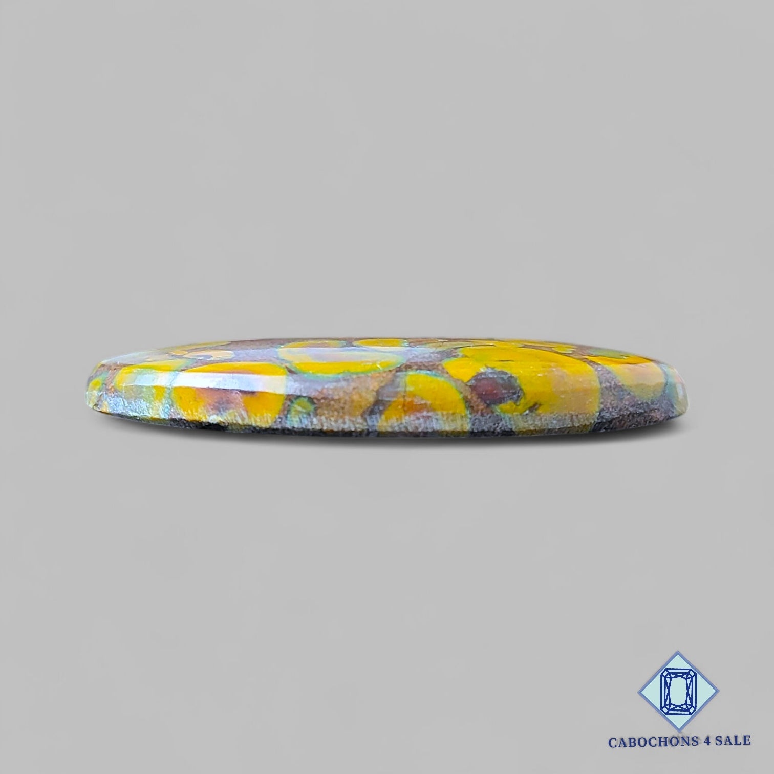 Swipe images to see stone with Dimension chart. This is a Fruit Jasper gemstone. The Product is a natural, Oval, Opaque. Fruit Jasper gemstone in Yellow color with the size of 41*27*5mm. Clarity of this Fruit Jasper Piece is Opaque. The Product is available exactly same shown in the picture: 1 piece Oval Cabochons Fruit Jasper certified for the price listed above.