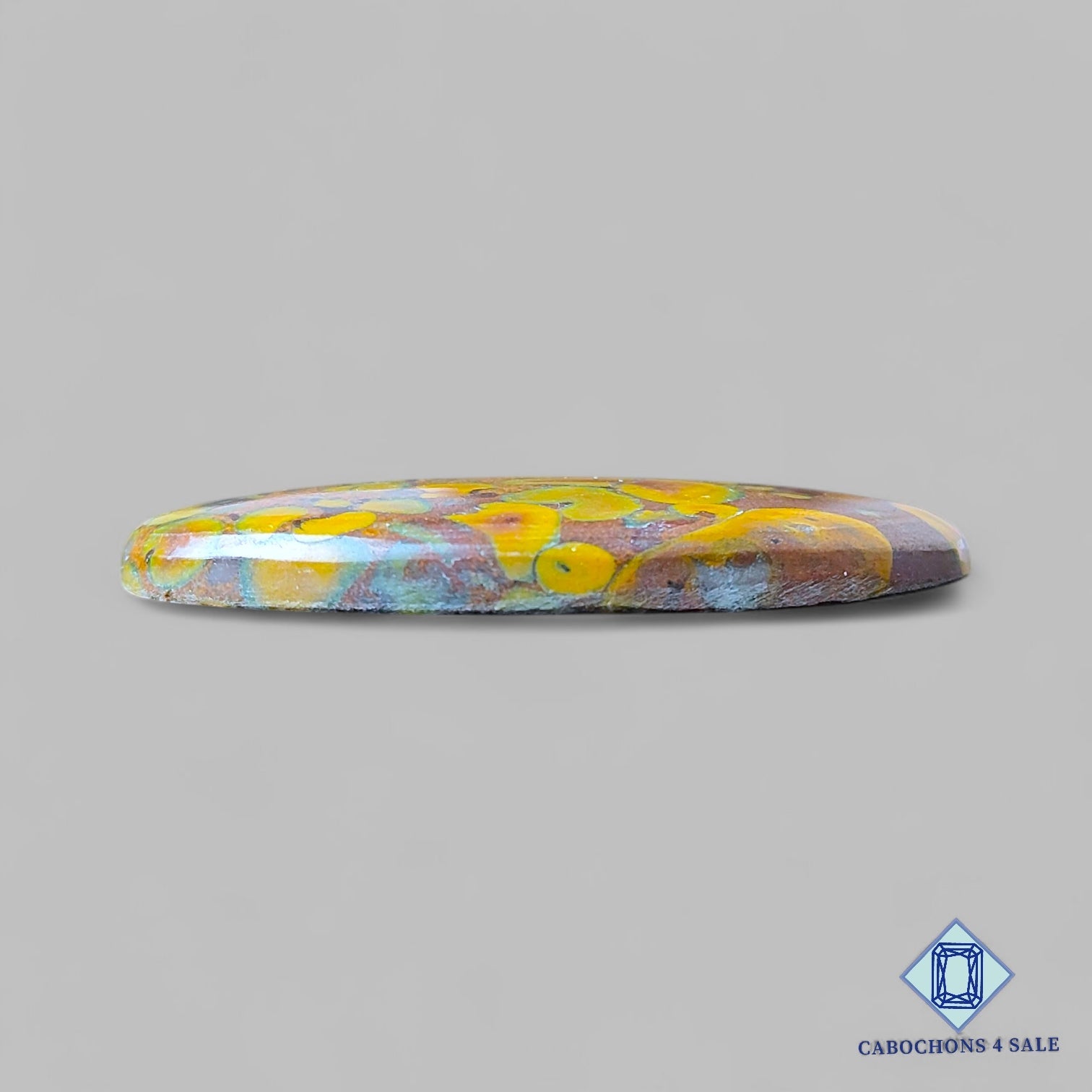 Swipe images to see stone with Dimension chart. This is a Fruit Jasper gemstone. The Product is a natural, Oval, Opaque. Fruit Jasper gemstone in Yellow color with the size of 49*28*6mm. Clarity of this Fruit Jasper Piece is Opaque. The Product is available exactly same shown in the picture: 1 piece Oval Cabochons Fruit Jasper certified for the price listed above.