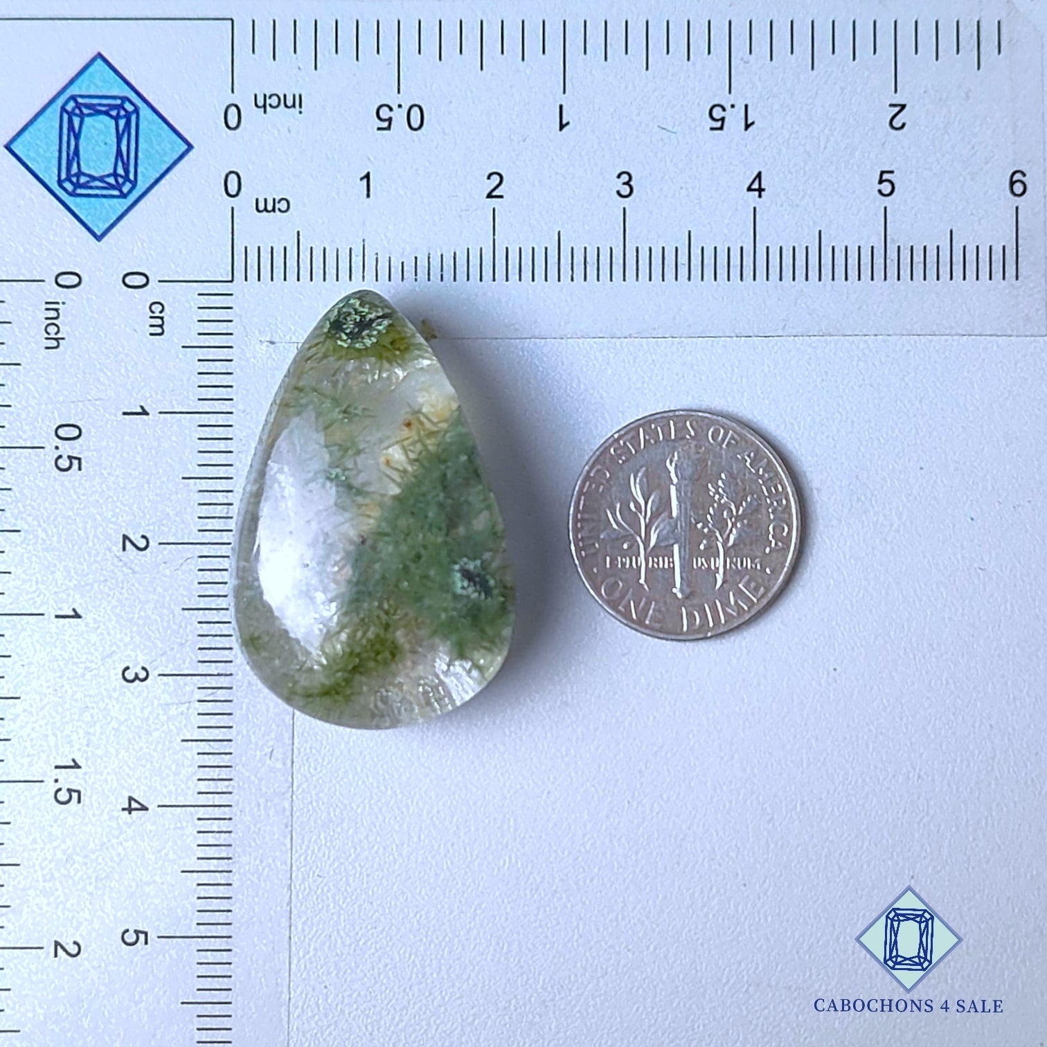 - Swipe images to see stone with Dimension chart. This is a Garden Quartz gemstone. The Product is a natural , Pear, Transparent. Garden Quartz gemstone in Green color with the size of 33*21*11mm. Clarity of this Garden Quartz Piece is Transparent. The Product is available exactly same shown in the picture: 1 piece Pear Cabochons Garden Quartz certified for the price listed above.