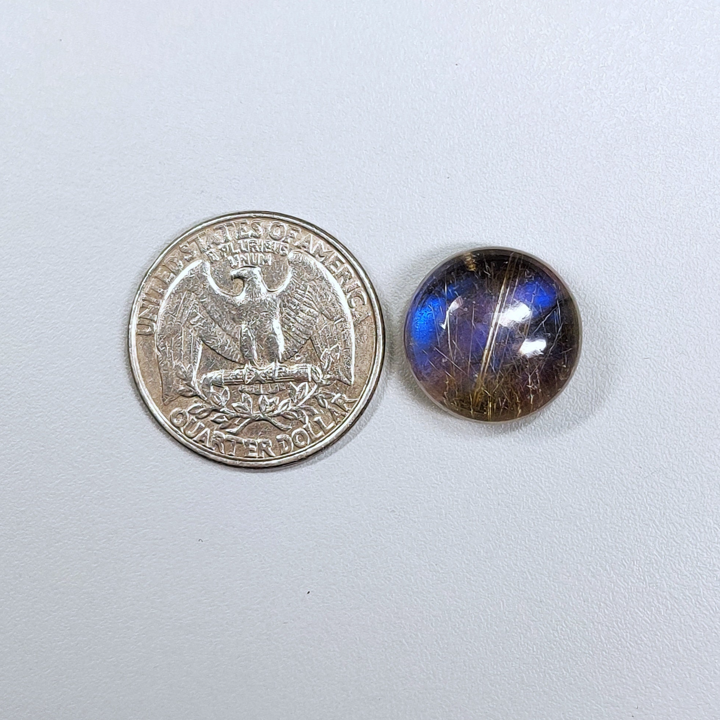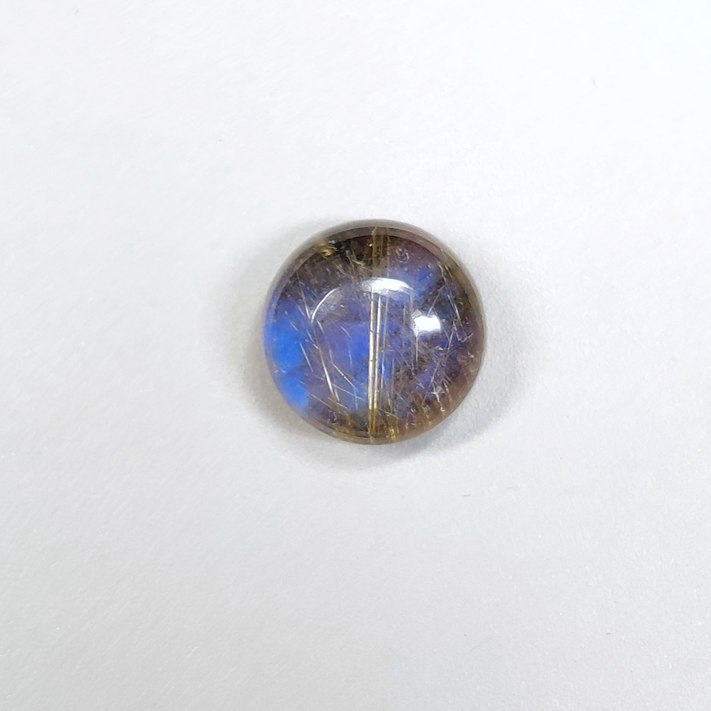 This is a Blue Labradorite + Golden Rutile Doublets. The product is a round doublet. Featuring a beautiful blend of blue from the Blue Labradorite with shimmering golden rutile inclusions. The clarity is doublets with a stunning visual effect. The product is sold as pictured: 1pc round doublet for the price listed.