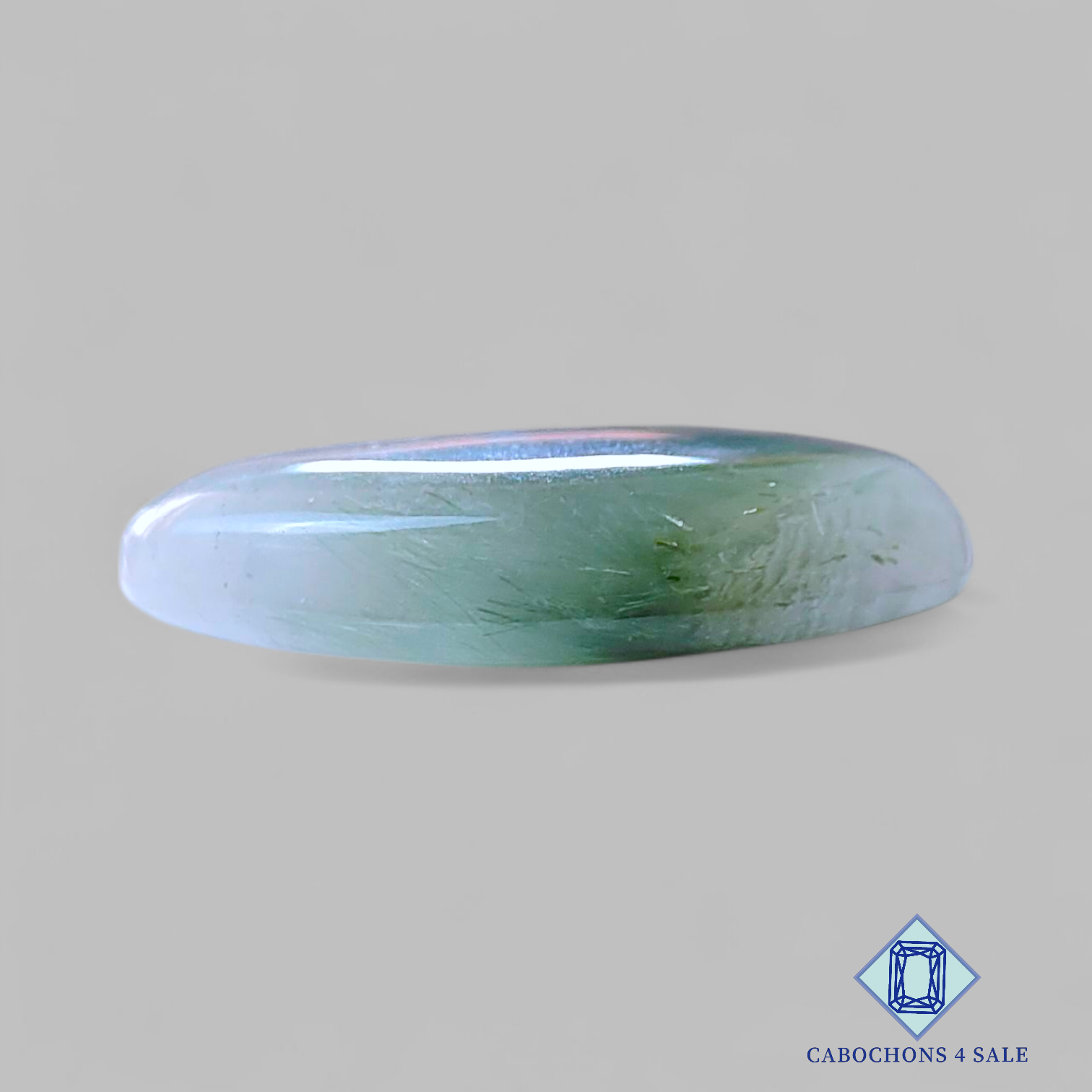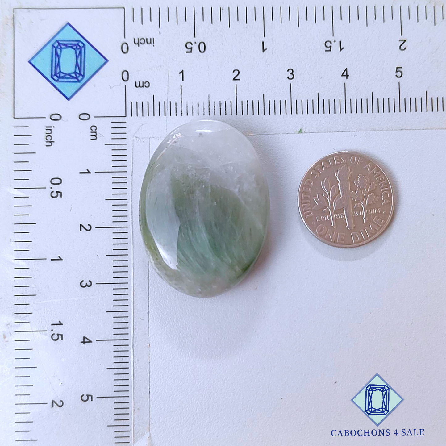 Swipe images to see stone with Dimension chart. This is a Green Rutile Quartz gemstone. The Product is a natural , Oval, Translucent. Green Rutile Quartz gemstone in Green color with the size of 31*23*8mm. Clarity of this Green Rutile Quartz Piece is Translucent. The Product is available exactly same shown in the picture: 1 piece Oval Cabochons Green Rutile Quartz certified for the price listed above.
