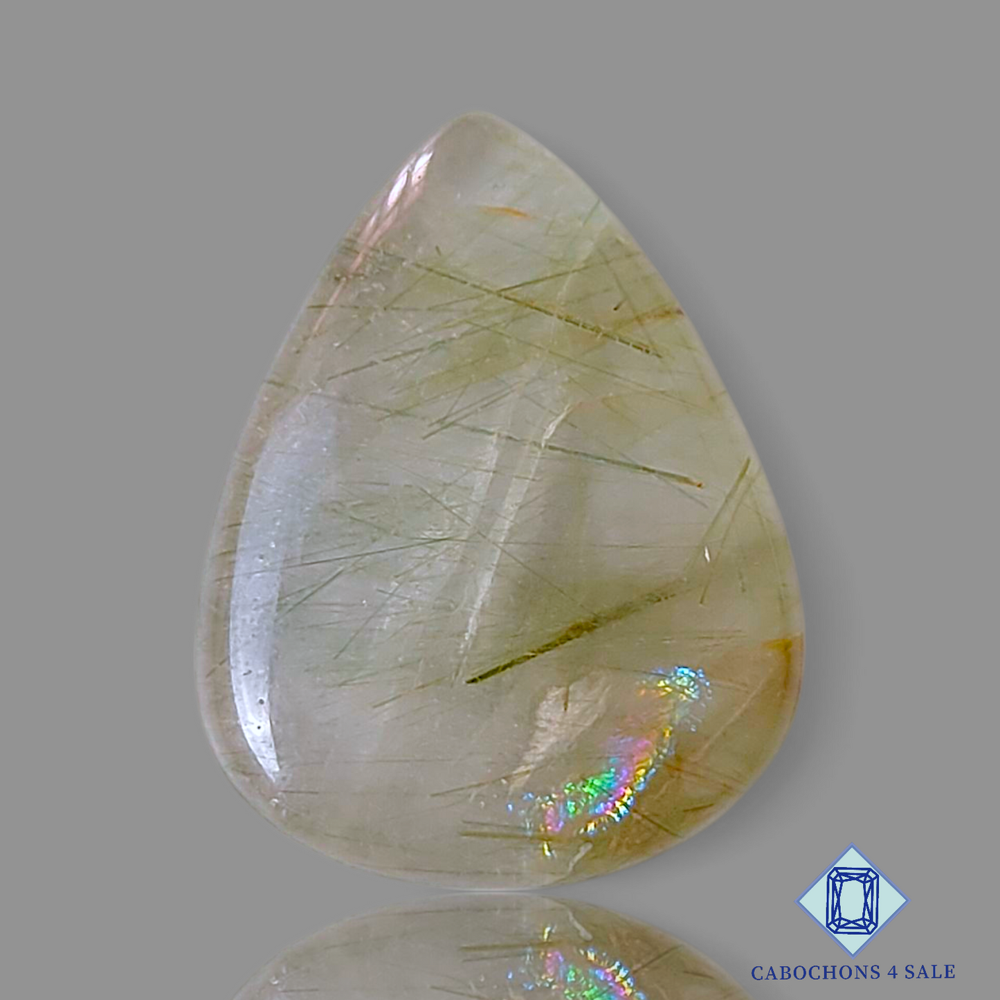 Swipe images to see stone with Dimension chart. This is a Green Rutile Quartz gemstone. The Product is a natural , Pear, Translucent. Green Rutile Quartz gemstone in Green color with the size of 24*18*5mm. Clarity of this Green Rutile Quartz Piece is Translucent. The Product is available exactly same shown in the picture: 1 piece Pear Cabochons Green Rutile Quartz certified for the price listed above.