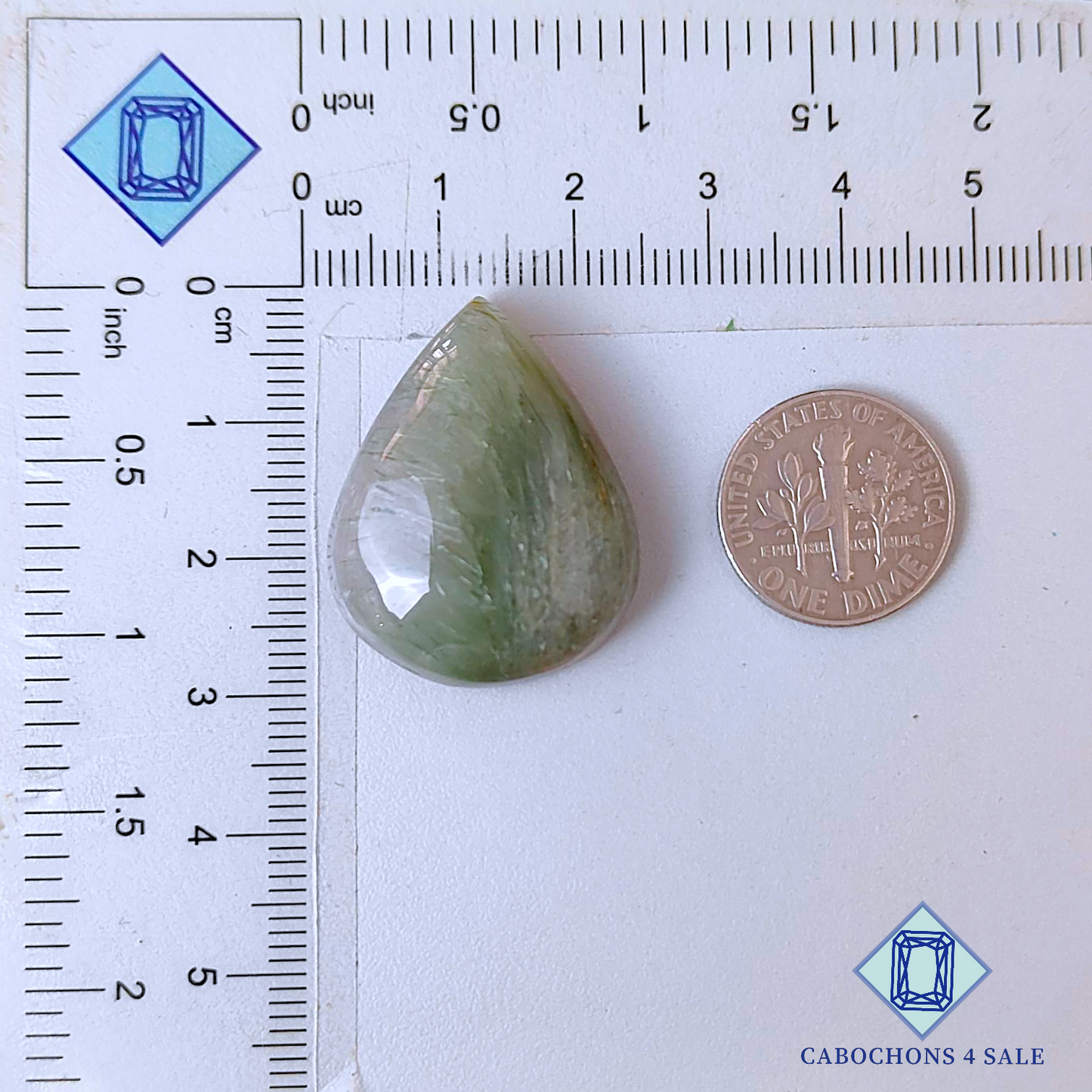 Swipe images to see stone with Dimension chart. This is a Green Rutile Quartz gemstone. The Product is a natural, Pear, Translucent. Green Rutile Quartz gemstone in Green color with the size of 28*22*8mm. Clarity of this Green Rutile Quartz Piece is Translucent. The Product is available exactly same shown in the picture: 1 piece Pear Cabochons Green Rutile Quartz certified for the price listed above.