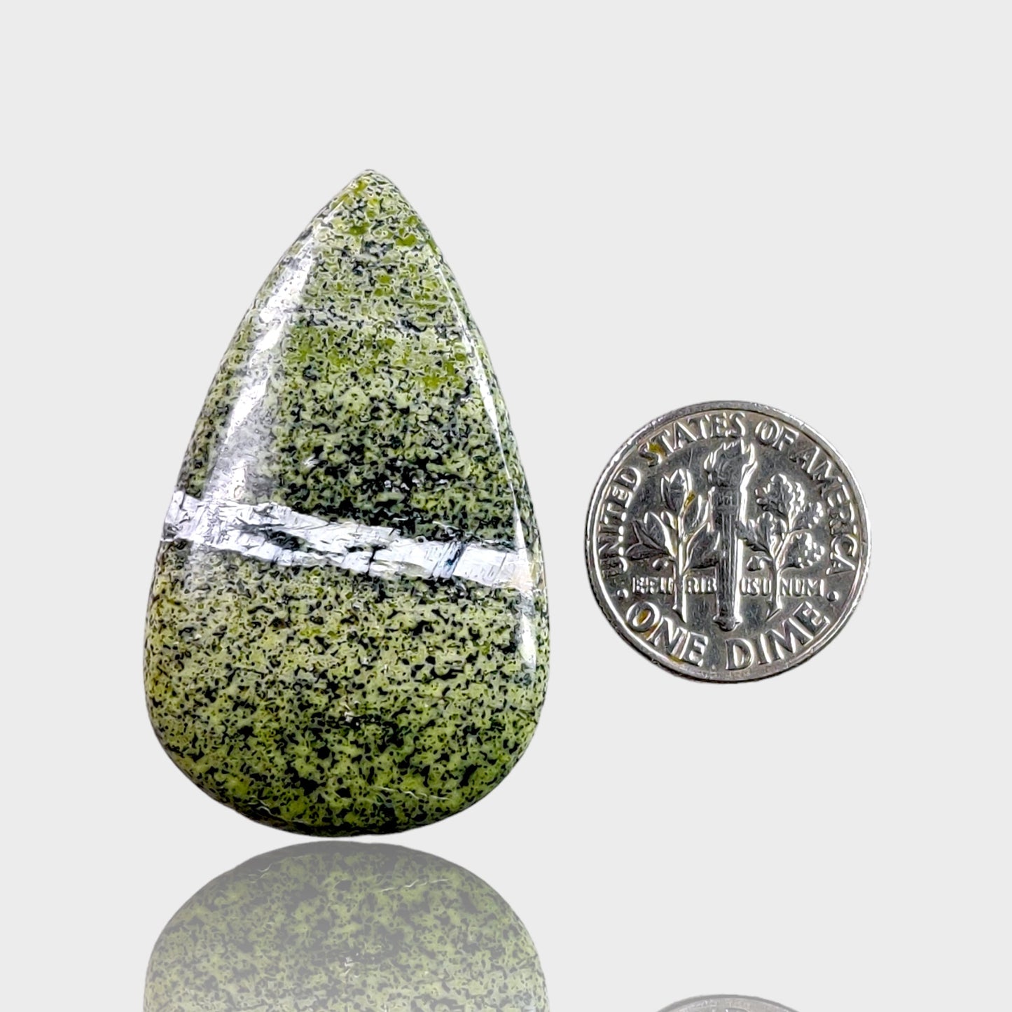 This is a Green Swiss Opal stone. The product is a natural Pear Opaque. Green Swiss Opal in green color with the approx size of 25x11x6mm. Clarity of this piece is Opaque. The product is sold as pictured: 1pc Pear Pairs for the price listed.