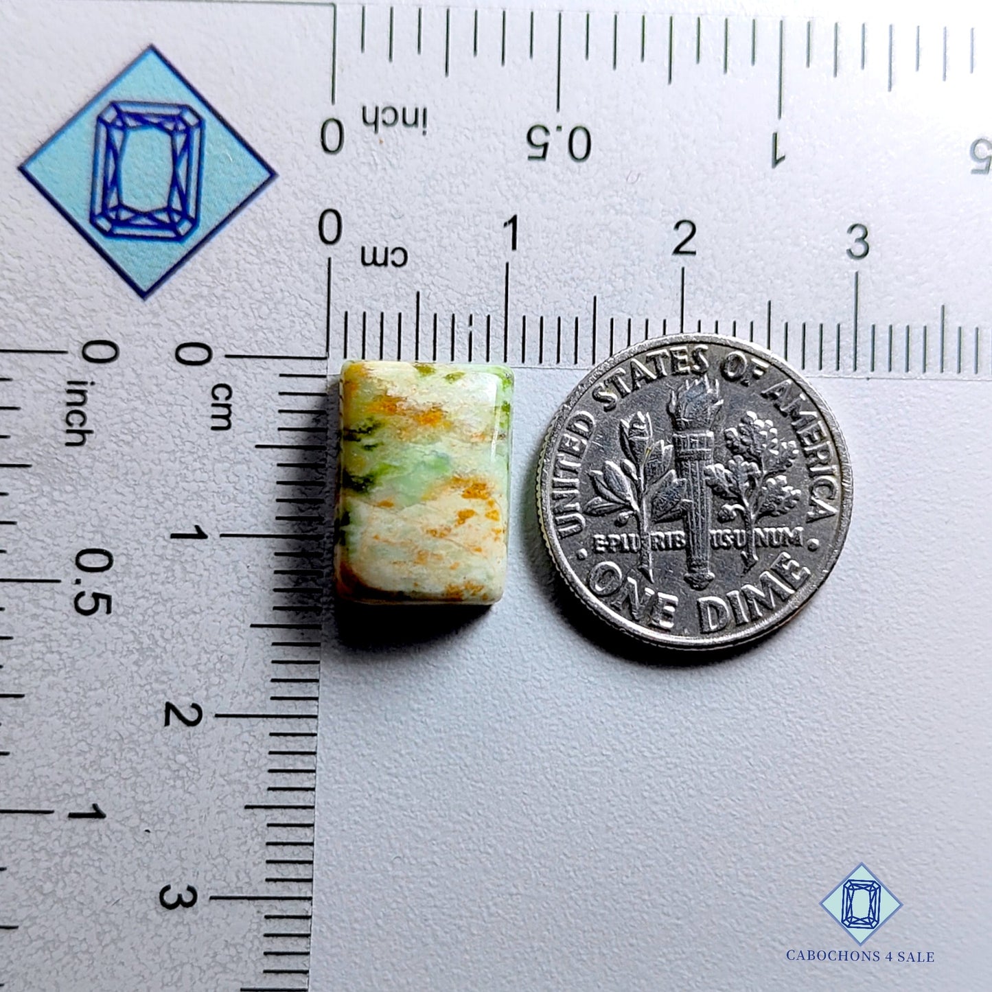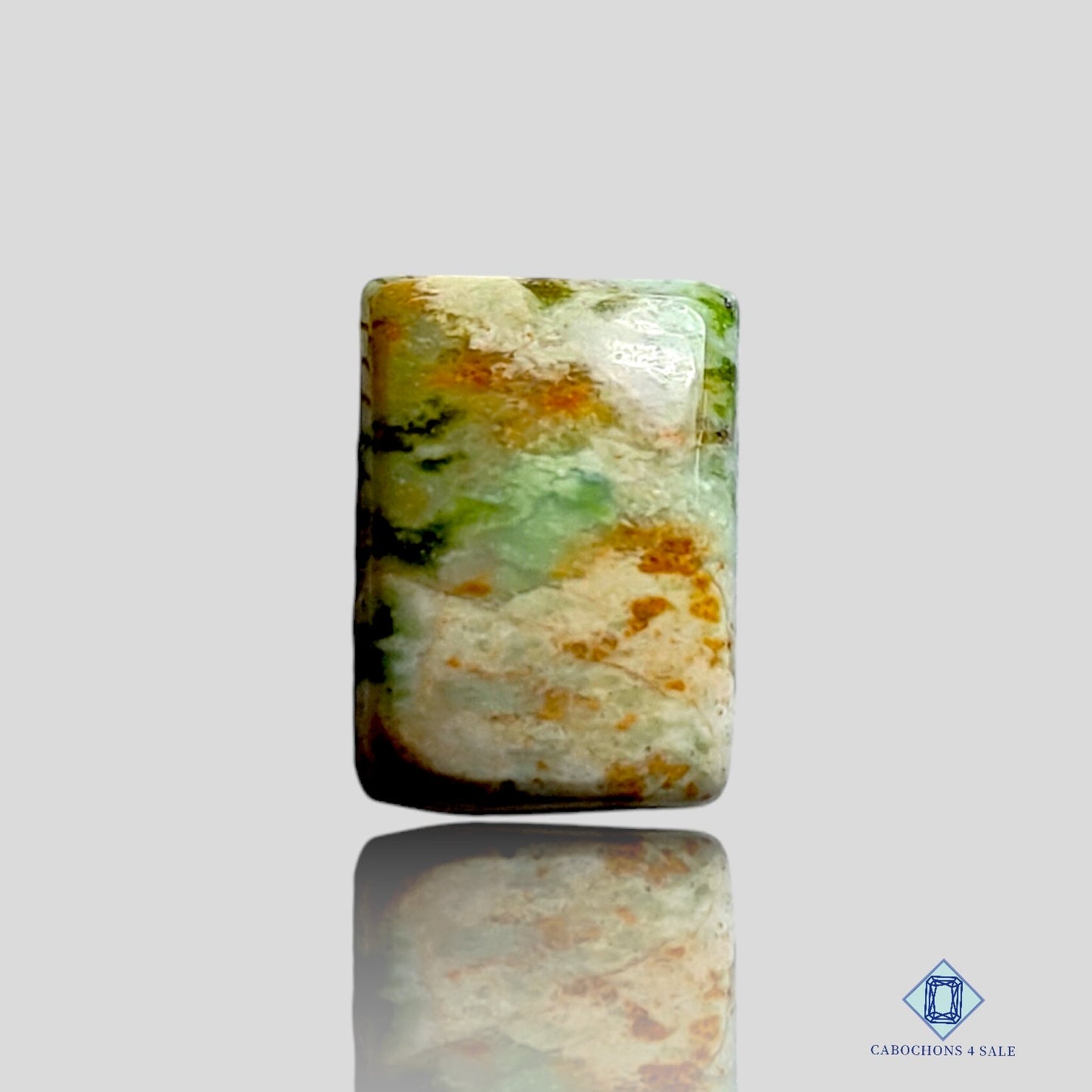 This is a Green Chrome Calcite The product is a natural Rectangle Cabochons Green Chrome Calcite in Green colour with the approx size of 10 to 15mm Clarity of This Green Chrome Calcite Piece is Opaque This gemstone is well cut and polished by our team. The Product is sold as pictured: 1pc Rectangle Green Green Chrome Calcite for the Price Listed.