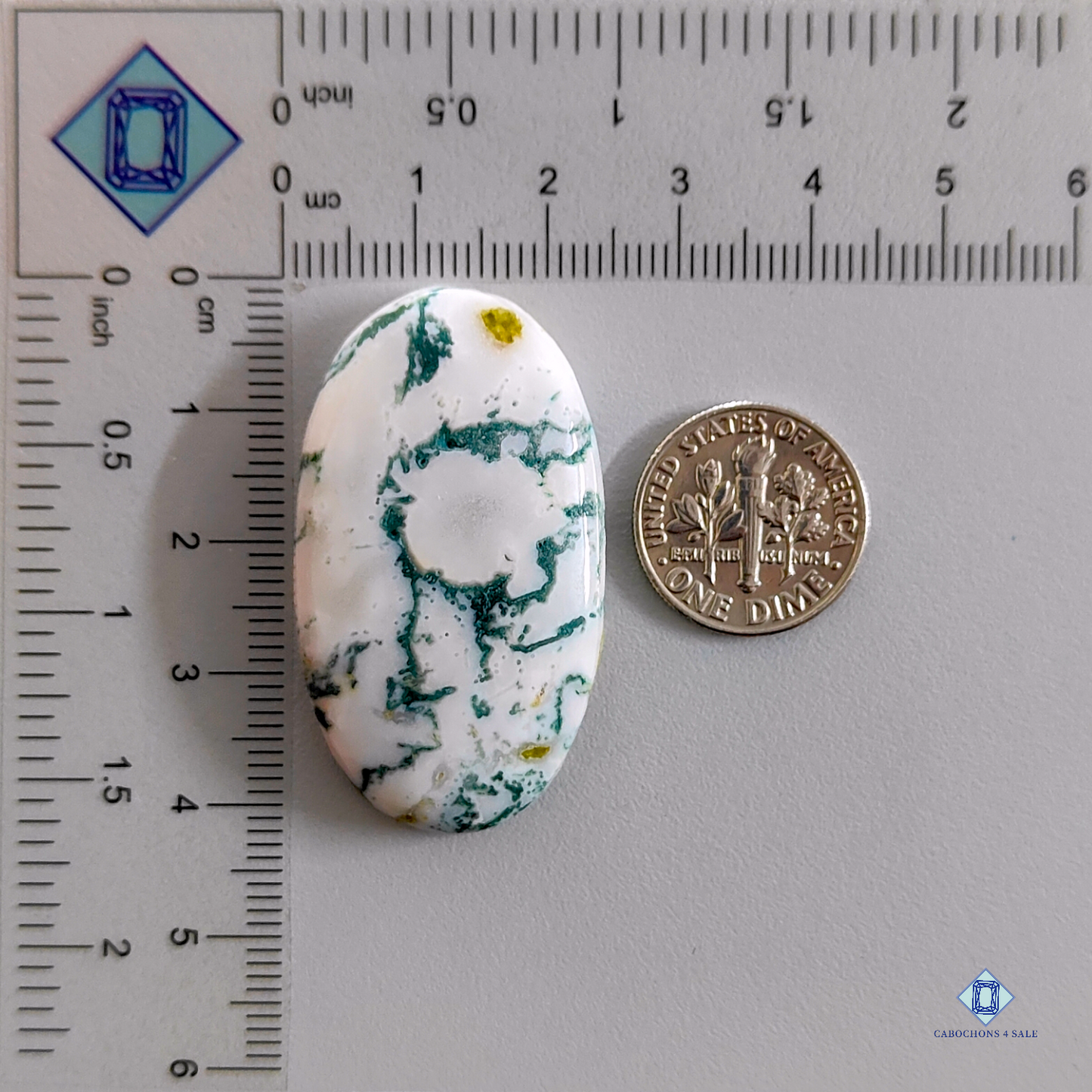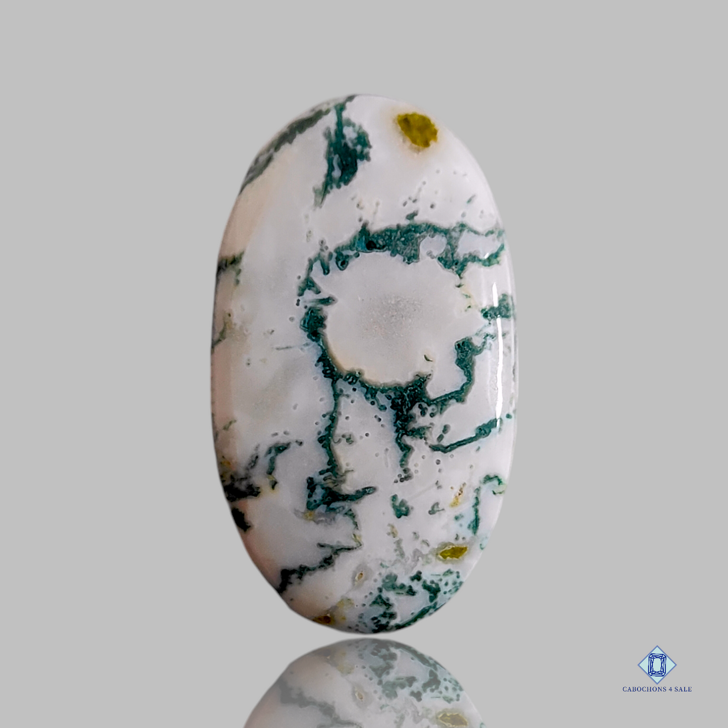 This is a Green Tree agate The product is a natural Oval CabochonsGreen Tree agate in Green colour with the approx size of 40 to 45mm Clarity of This Green Tree agate Piece is Opaque This gemstone is well cut and polished by our team. The Product is sold as pictured: 1pc Oval Green Tree agate for the Price Listed.