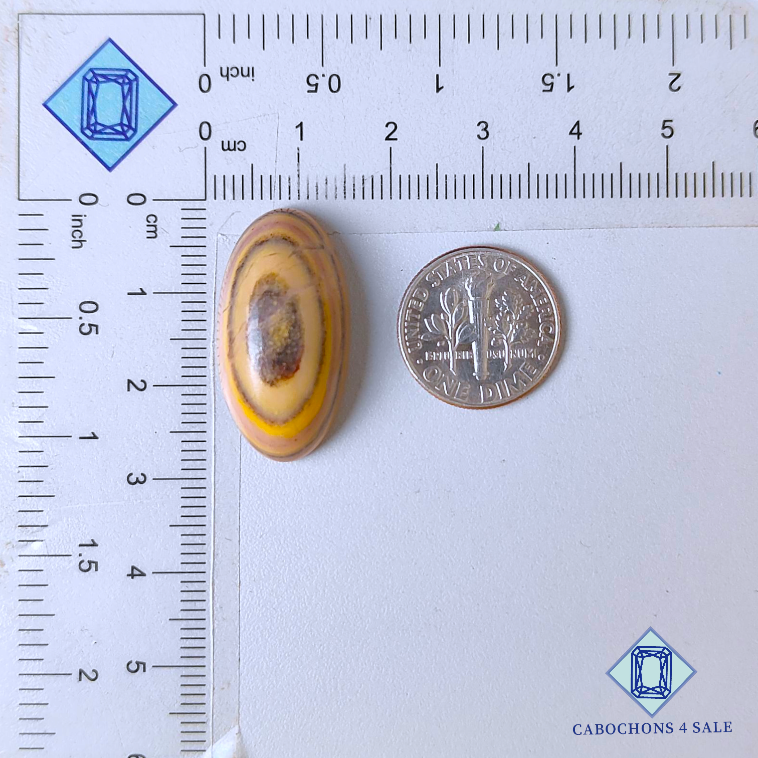 Swipe images to see stone with Dimension chart. This is a Hickoryite Jasper gemstone. The Product is a natural , Oval, Opaque. Hickoryite Jasper gemstone in Yellow color with the size of 27*14*9mm. Clarity of this Hickoryite Jasper Piece is Opaque. The Product is available exactly same shown in the picture: 1 piece Oval Cabochons Hickoryite Jasper certified for the price listed above.