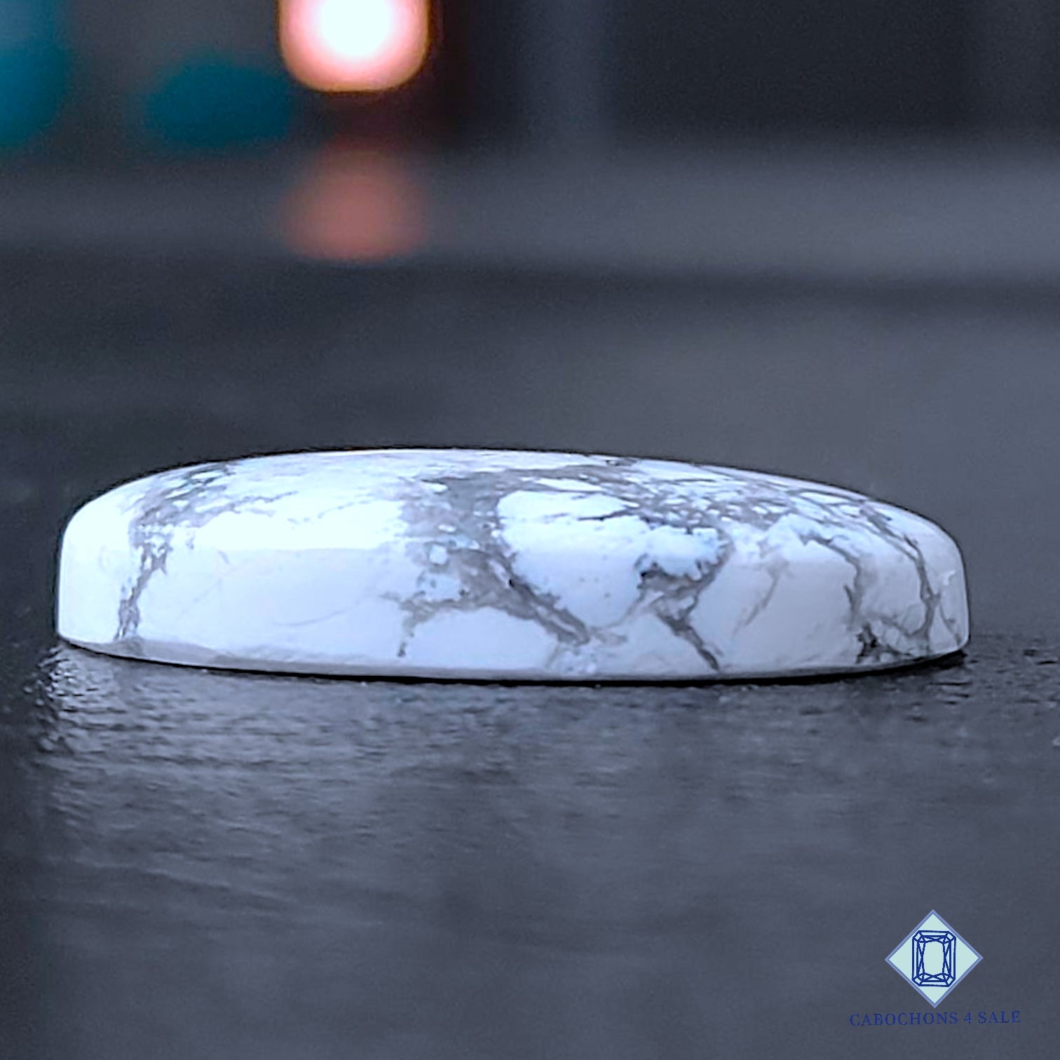 Swipe images to see stone with Dimension chart. This is a Howlite gemstone. The Product is a natural , Oval, Opaque. Howlite gemstone in White color with the size of 28*19*6mm. Clarity of this Howlite Piece is Opaque. The Product is available exactly same shown in the picture: 1 piece Oval Cabochons Howlite certified for the price listed above.