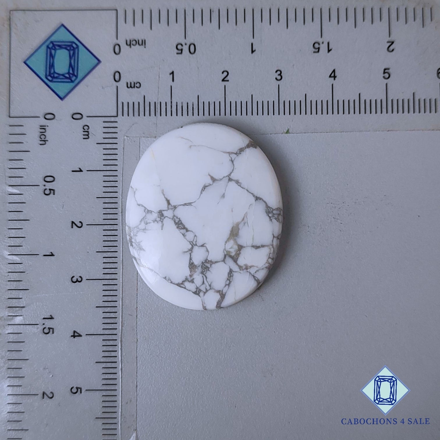 Swipe images to see stone with Dimension chart. This is a Howlite gemstone. The Product is a natural , Oval, Opaque. Howlite gemstone in White color with the size of 34*28*5mm. Clarity of this Howlite Piece is Opaque. The Product is available exactly same shown in the picture: 1 piece Oval Cabochons Howlite certified for the price listed above.