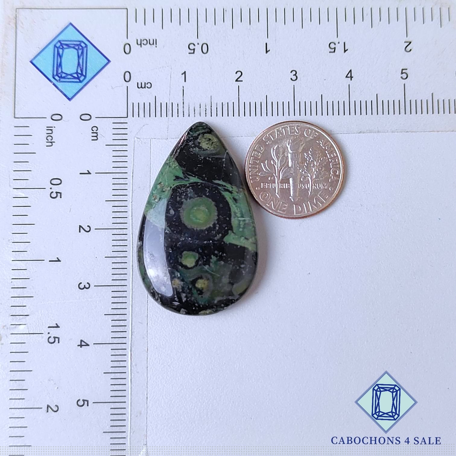 Swipe images to see stone with Dimension chart. This is a Kambaba Jasper gemstone. The Product is a natural , Pear, Opaque. Kambaba Jasper gemstone in Green color with the  size of 34*21*5mm. Clarity of this Kambaba Jasper Piece is  Opaque. The Product is available exactly same shown in the picture: 1 piece Pear Cabochons Kambaba Jasper certified for the price listed above.