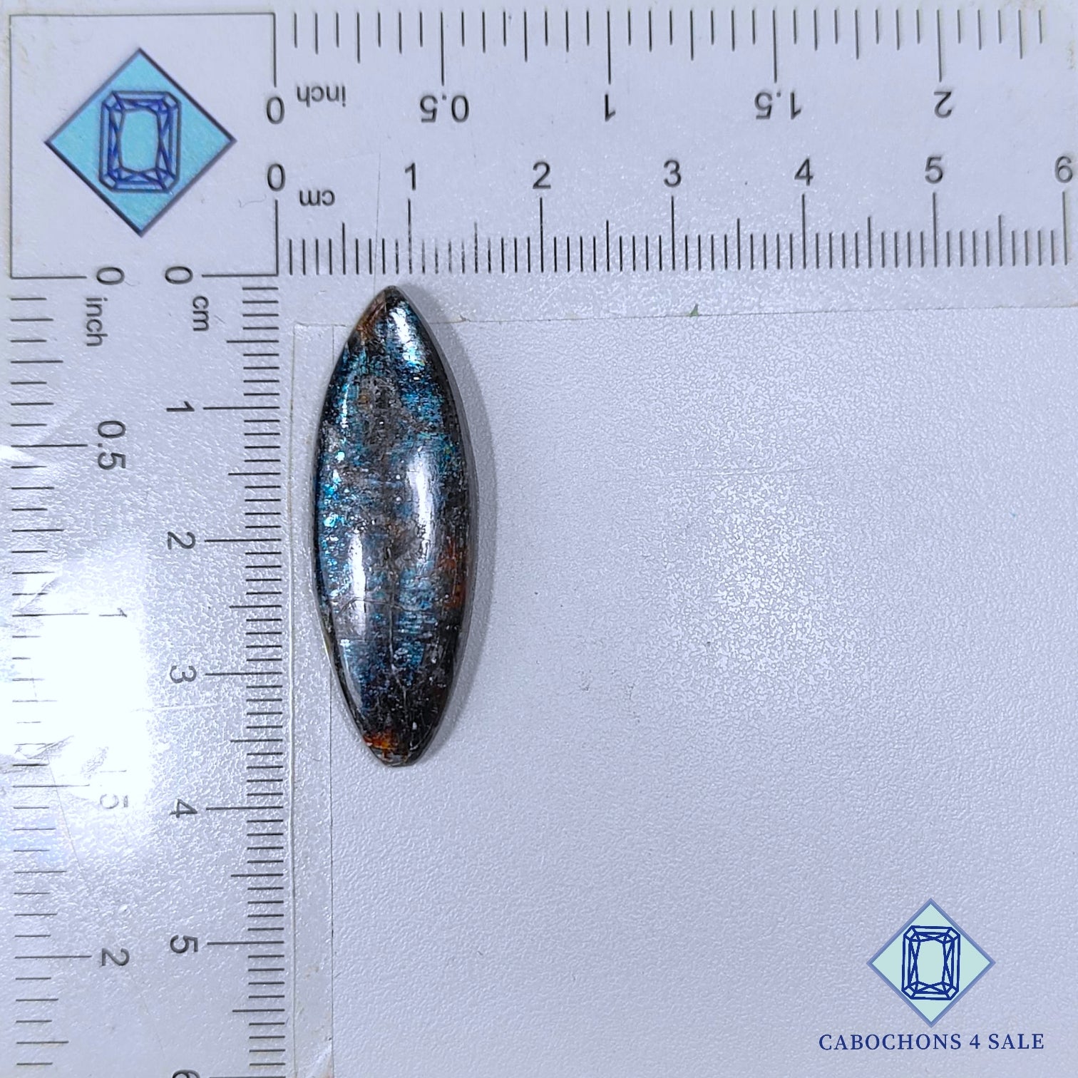 Swipe images to see stone with Dimension chart. This is a Kyanite Quartz gemstone. The Product is a natural , Marquise, Opaque. Kyanite Quartz gemstone in Blue color with the size of 35*12*6mm. Clarity of this Kyanite Quartz Piece is Opaque. The Product is available exactly same shown in the picture: 1 piece Marquise Cabochons Kyanite Quartz certified for the price listed above.