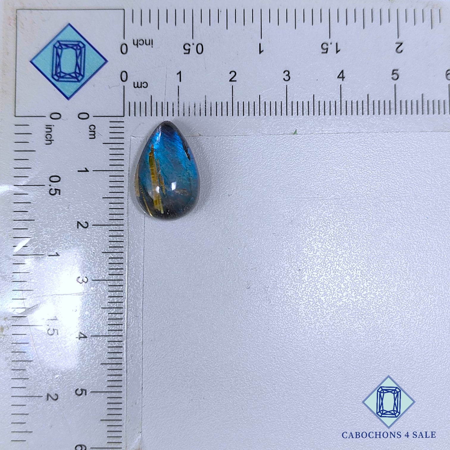 Swipe images to see stone with Dimension chart. This is a Labradorite + Rutile Quartz Doublet gemstone. The Product is a natural , Pear, Translucent. Labradorite + Rutile Quartz Doublet gemstone in Blue color with the size of 18*11*8mm. Clarity of this Labradorite + Rutile Quartz Doublet Piece is Translucent. The Product is available exactly same shown in the picture: 1 piece Pear Doublets Labradorite + Rutile Quartz Doublet certified for the price listed above.