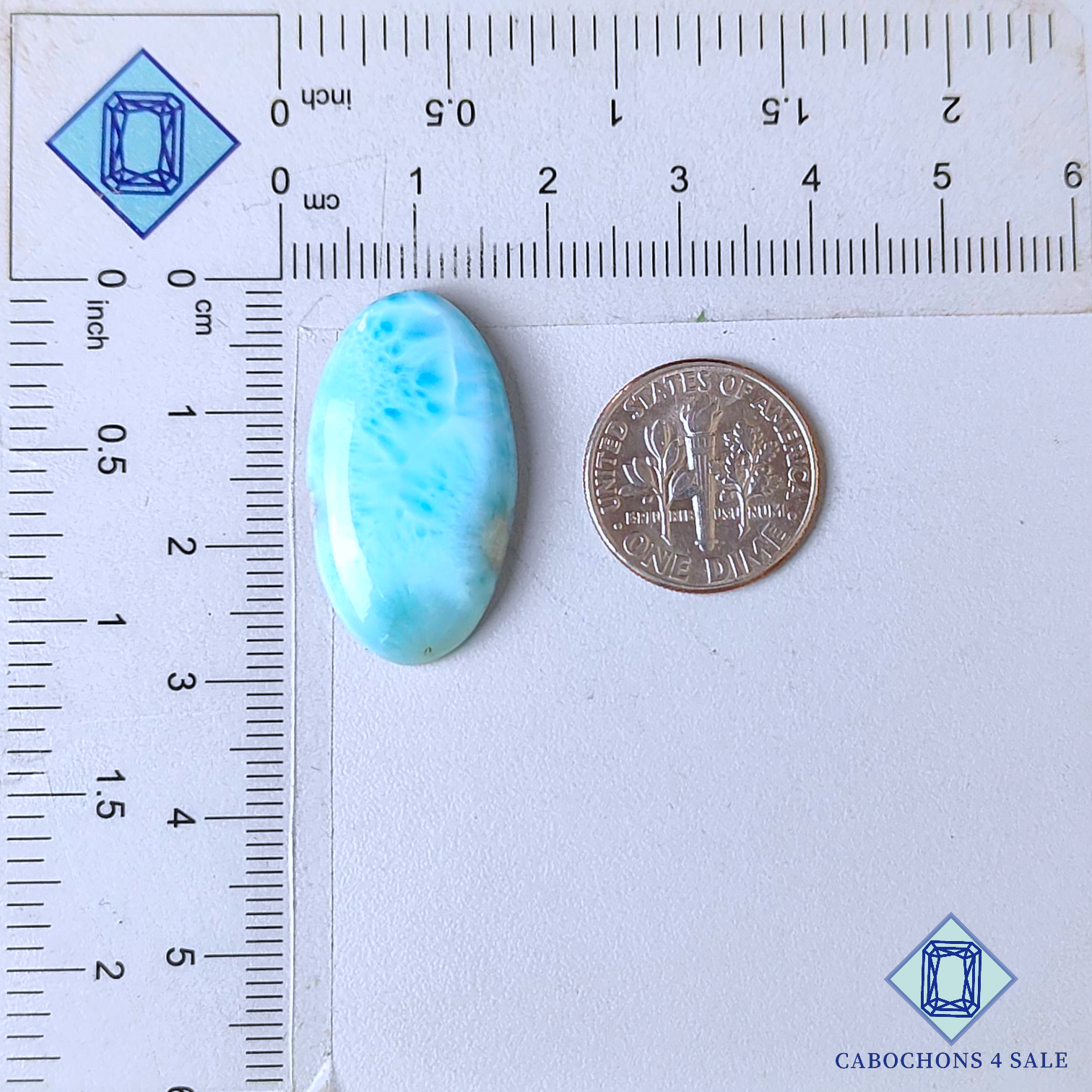 Swipe images to see stone with Dimension chart. This is a Larimar gemstone. The Product is a natural , Oval, Opaque. Larimar gemstone in Blue color with the size of 28*15*5mm. Clarity of this Larimar Piece is Opaque. The Product is available exactly same shown in the picture: 1 piece Oval Cabochons Larimar certified for the price listed above.