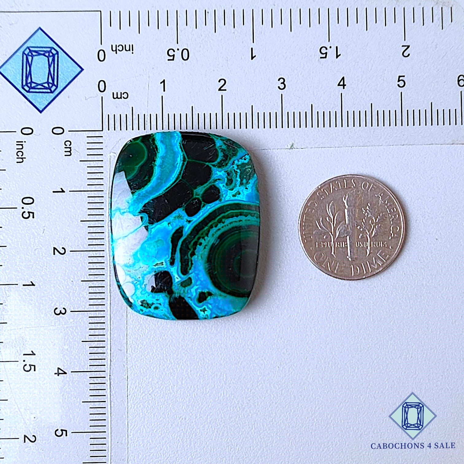 Swipe images to see stone with Dimension chart. This is a Malachite Chrysocolla gemstone. The Product is a natural , Rectangle, Opaque. Malachite Chrysocolla gemstone in Green color with the size of 31*25*6mm. Clarity of this Malachite Chrysocolla Piece is Opaque. The Product is available exactly same shown in the picture: 1 piece Rectangle Cabochons Malachite Chrysocolla certified for the price listed above.