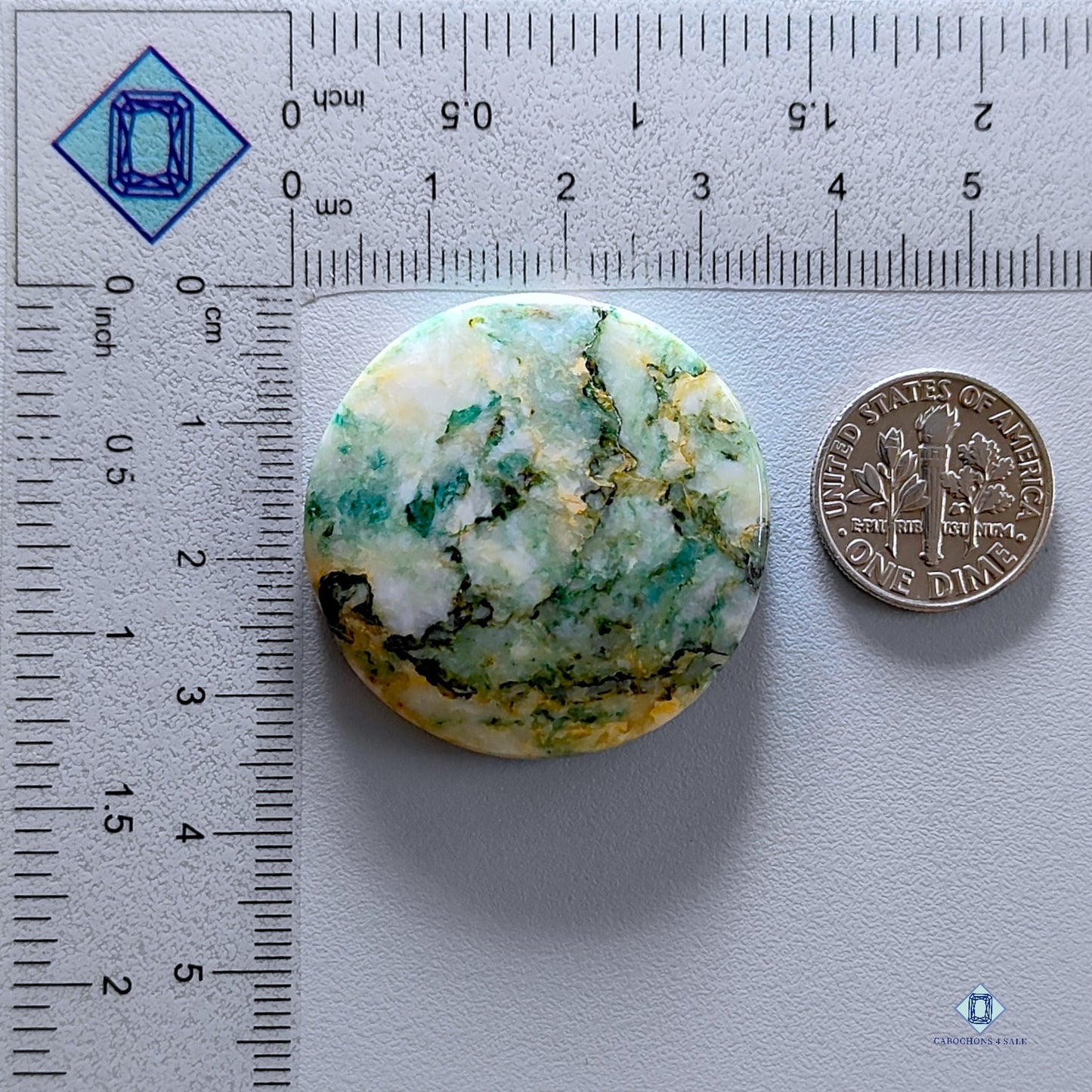 Swipe images to see stone with Dimension chart. This Is a Meriposite. The Product is a natural Round Opaque.Meriposite in Green colour with the approx size of 30 to 35mm. Clarity of This Meriposite Piece is Opaque. The Product is sold as pictured 1pc Round Cabochons Meriposite for the price Listed.