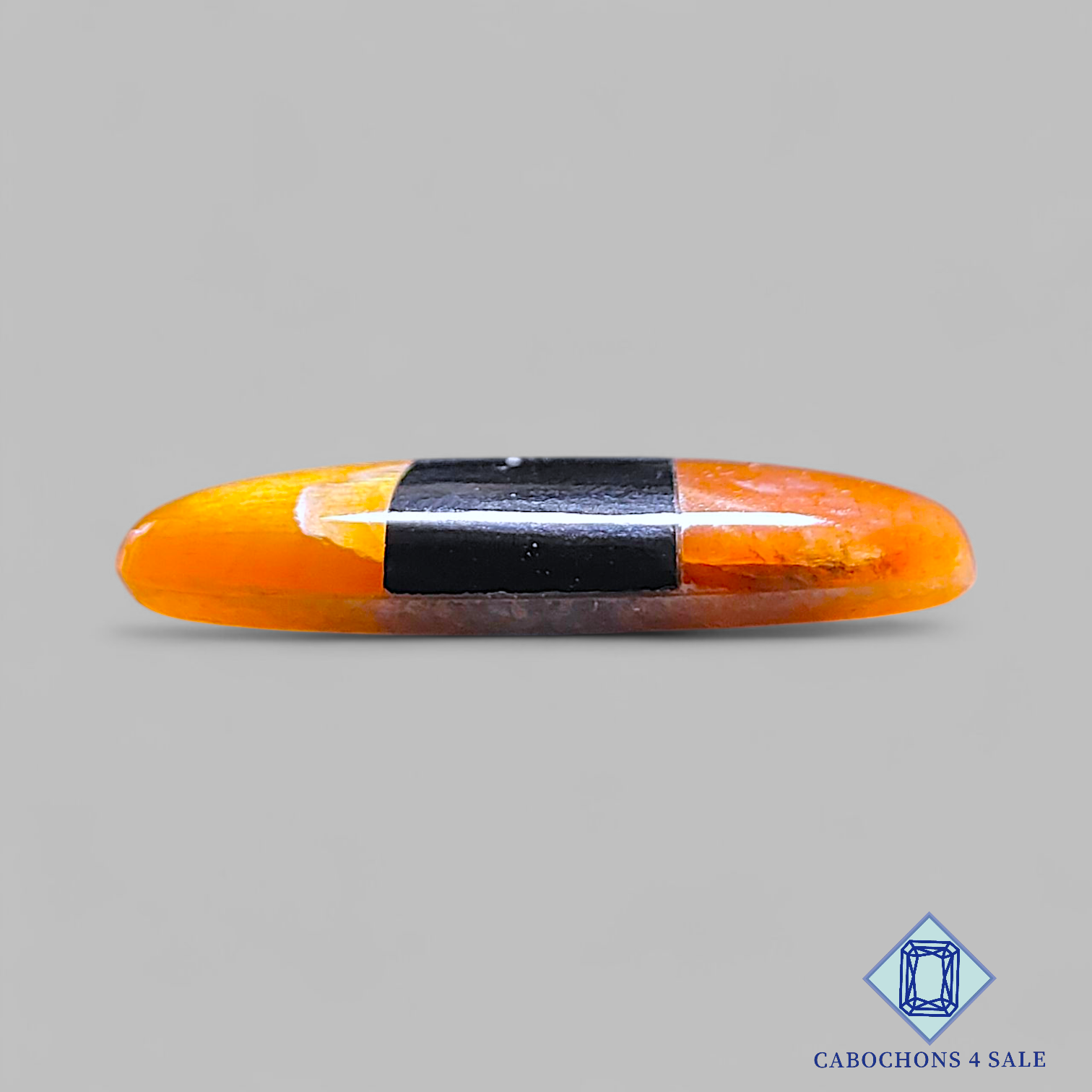 Swipe images to see stone with Dimension chart. This is a Meteor Shower Rainbow Lattice Sunstone + Black Onyx Doublets gemstone. The Product is a natural , Oval, Doublets. Meteor Shower Rainbow Lattice Sunstone + Black Onyx Doublets gemstone in Orange color with the  size of 33*16*5mm. Clarity of this Meteor Shower Rainbow Lattice Sunstone + Black Onyx Doublets Piece is  Doublets. The Product is available exactly same shown in the picture: 1 piece Oval Doublets Meteor Shower Rainbow Lattice Sunstone + Black Onyx Doublets certified for the price listed above.