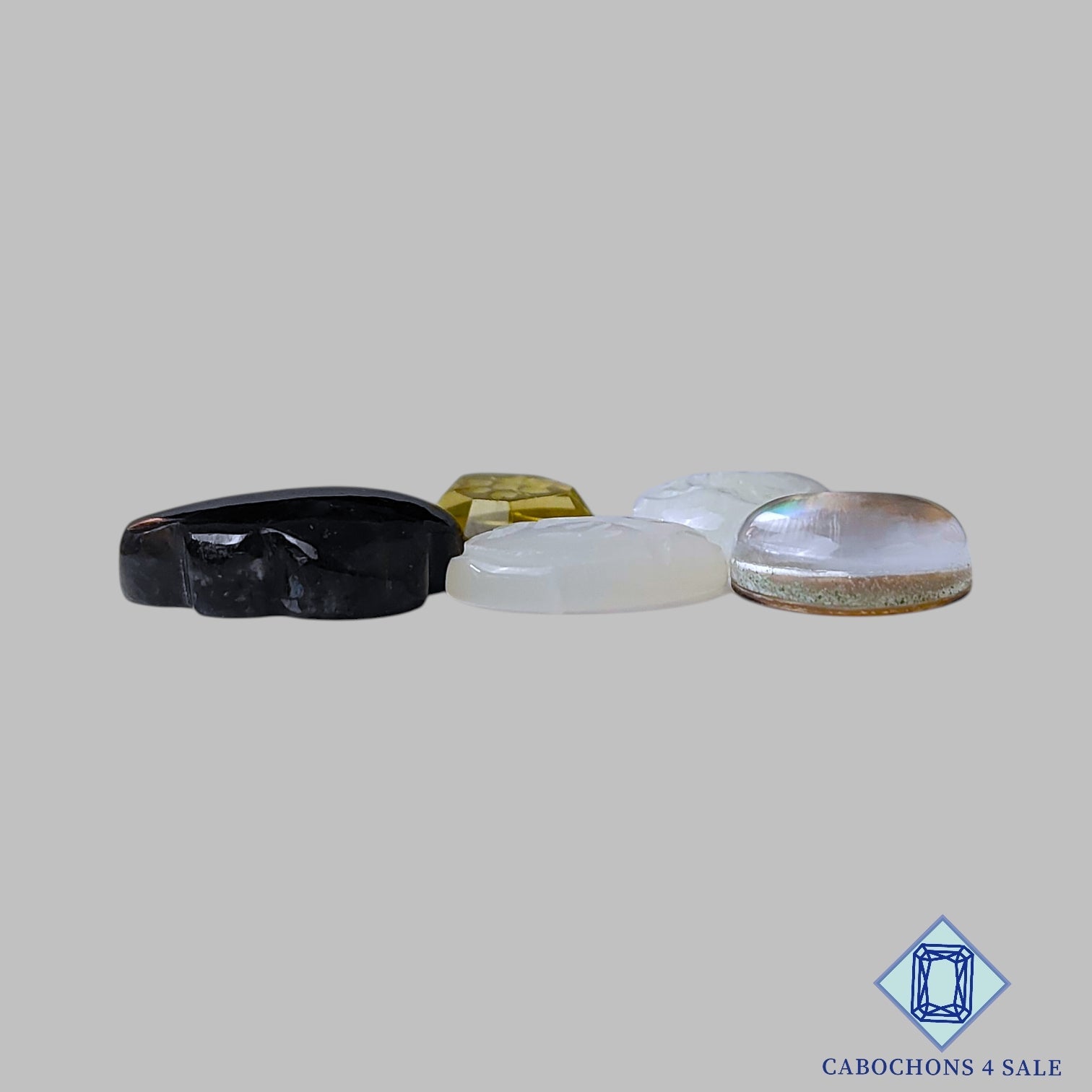 This is a Mix Stone (Black Tanzanian Sunstone, Madras Moonstone, African Moonstone, Citrine, Mother Of Pearl + Crystal Quartz Doublet) gemstone. The Product is a natural , Mix Shape, Translucent. Mix Stone gemstone in Mix Color color with the size of mm. Clarity of this Mix Stone Piece is Translucent. The Product is available exactly same shown in the picture: 1 piece Mix Shape Lots Mix Stone certified for the price listed above.