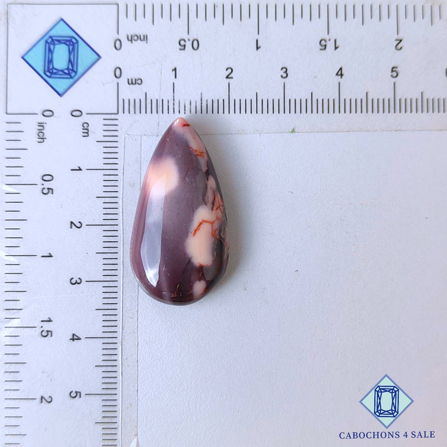 Swipe images to see stone with Dimension chart. This is a Mookaite gemstone. The Product is a natural , Pear, Opaque. Mookaite gemstone in Purple color with the size of 33*17*7mm. Clarity of this Mookaite Piece is Opaque. The Product is available exactly same shown in the picture: 1 piece Pear Cabochons Mookaite certified for the price listed above.