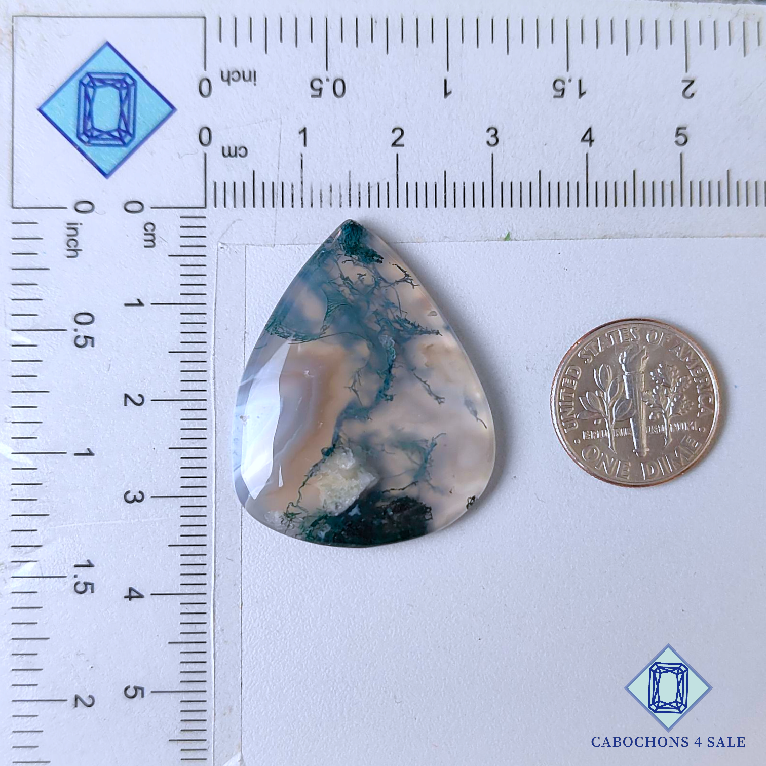 Swipe images to see stone with Dimension chart. This is a Moss Agate gemstone. The Product is a natural , Pear, Translucent. Moss Agate gemstone in Green color with the  size of 34*27*4mm. Clarity of this Moss Agate Piece is  Translucent. The Product is available exactly same shown in the picture: 1 piece Pear Cabochons Moss Agate certified for the price listed above.
