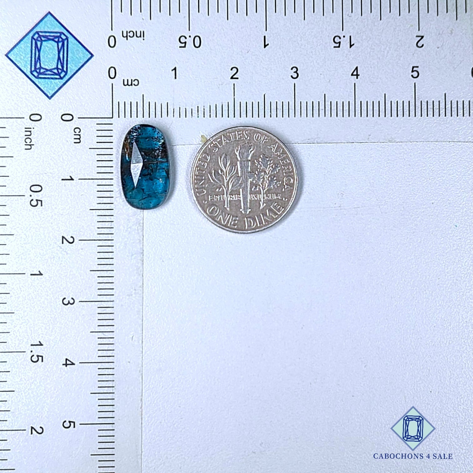 Swipe images to see stone with Dimension chart. This is a Moss Teal Blue Kyanite gemstone. The Product is a natural , Oval, Translucent. Moss Teal Blue Kyanite gemstone in Blue color with the size of 14*8*3mm. Clarity of this Moss Teal Blue Kyanite Piece is Translucent. The Product is available exactly same shown in the picture: 1 piece Oval Rose Cut Moss Teal Blue Kyanite certified for the price listed above.