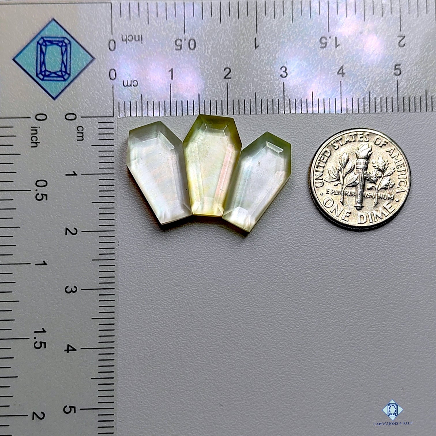 Swipe images to see stone with Dimension chart. This Is a Mother Of Pearl + Crystal Quartz Doublets. The Product is a natural Coffin Doublets.Mother Of Pearl + Crystal Quartz Doublets in Rainbow colour with the approx size of 10 to 15mm. Clarity of This Mother Of Pearl + Crystal Quartz Doublets Piece is Doublets. The Product is sold as pictured 1pc Coffin Doublets Mother Of Pearl + Crystal Quartz Doublets for the price Listed.