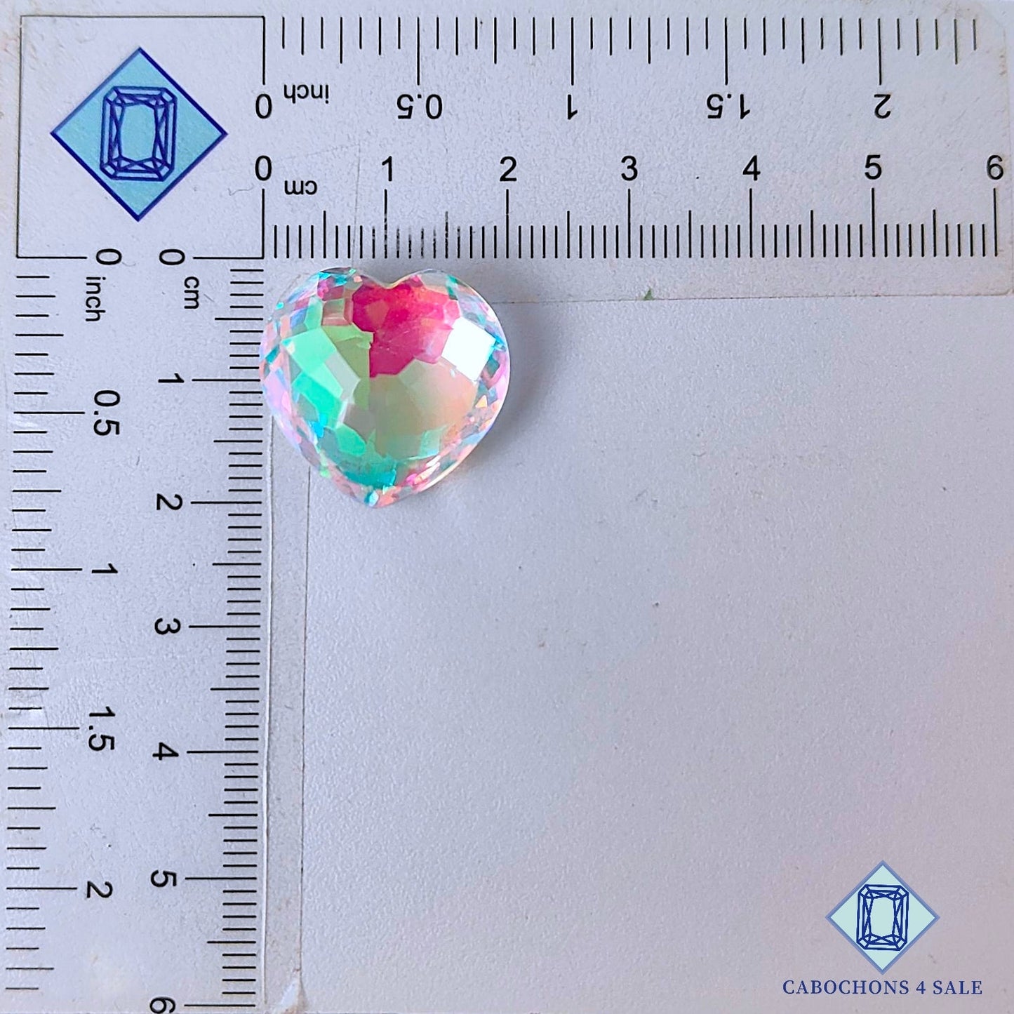 Swipe images to see stone with Dimension chart. This is a Mystic Glass gemstone. The Product is a natural , Heart, Transparent. Mystic Glass gemstone in Colorless color with the  size of 19*19*8mm. Clarity of this Mystic Glass Piece is  Transparent. The Product is available exactly same shown in the picture: 1 piece Heart Carvings Mystic Glass certified for the price listed above.