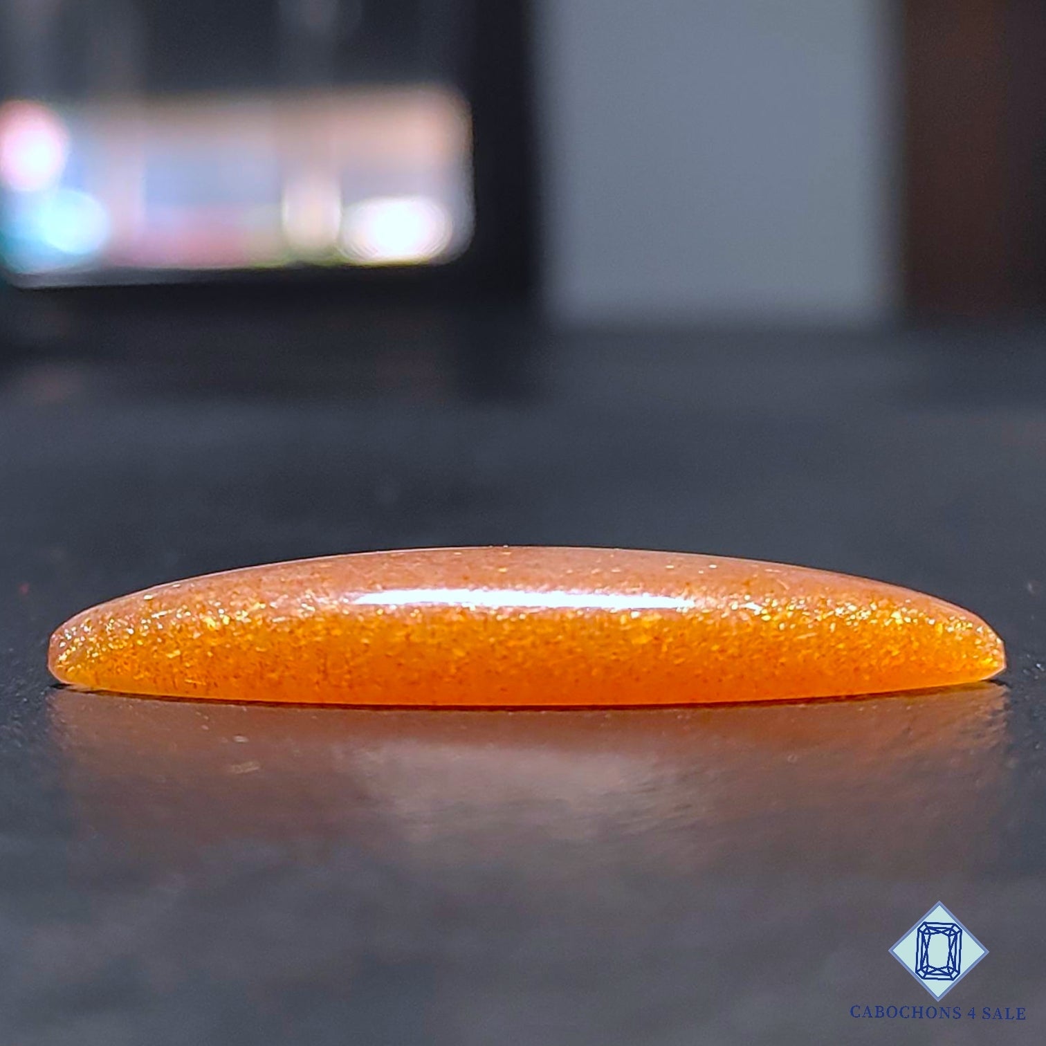 This is a Peach Moonstone with Sunstone gemstone. The Product is a natural , Marquise, Translucent. Peach Moonstone with Sunstone gemstone in Brown color with the size of 40*13*5mm. Clarity of this Peach Moonstone with Sunstone Piece is Translucent. The Product is available exactly same shown in the picture: 1 piece Marquise Cabochons Peach Moonstone with Sunstone certified for the price listed above.