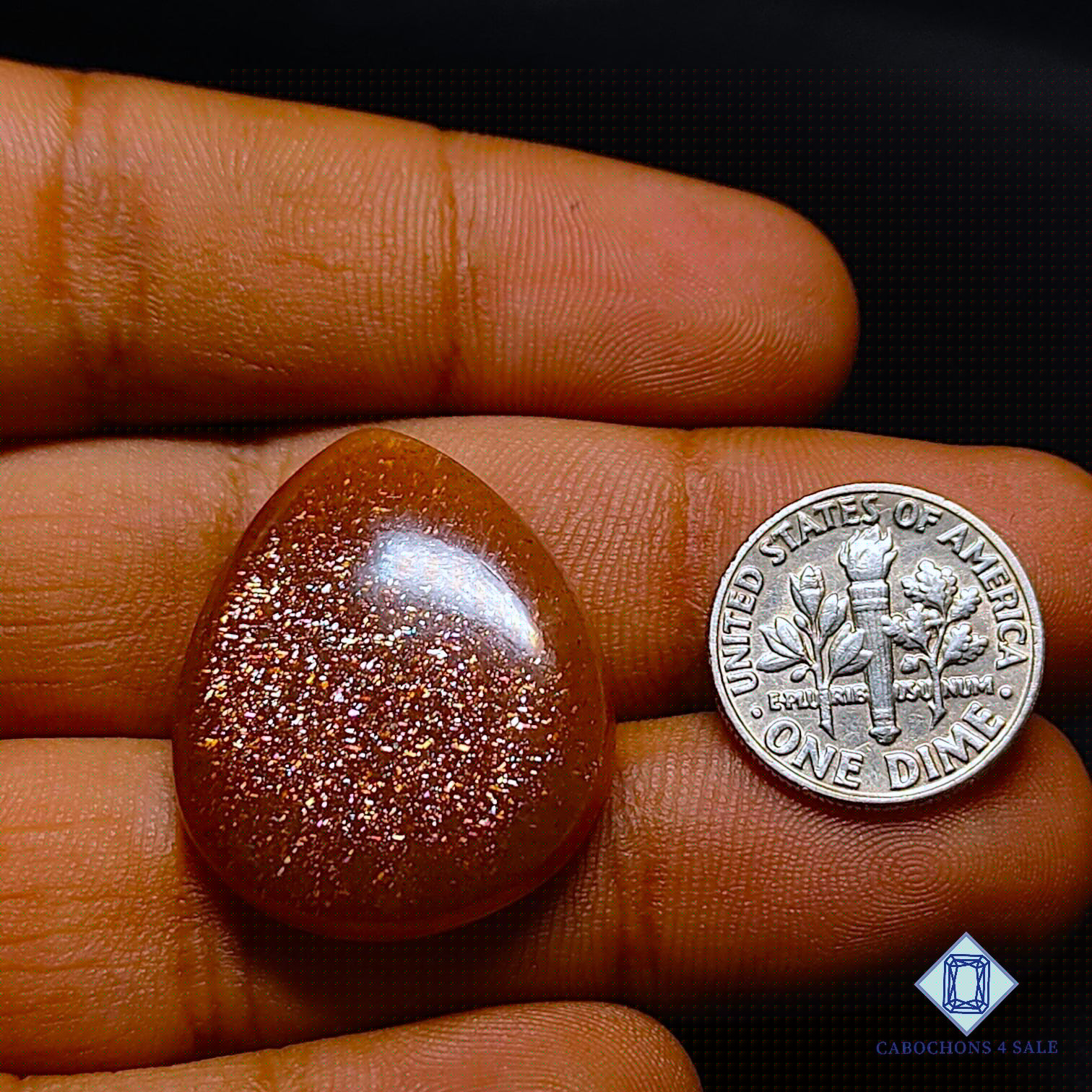 This is a Peach Moonstone with Sunstone gemstone. The Product is a natural , Pear, Translucent. Peach Moonstone with Sunstone gemstone in Brown color with the size of 29*23*5mm. Clarity of this Peach Moonstone with Sunstone Piece is Translucent. The Product is available exactly same shown in the picture: 1 piece Pear Cabochons Peach Moonstone with Sunstone certified for the price listed above.