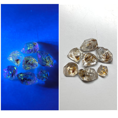 This is a Petroleum Quartz gemstone. The Product is a natural , Mix Shape, Translucent. Petroleum Quartz gemstone in Colorless color with the size of 6*5*4 to 9*6*5mm. Clarity of this Petroleum Quartz Piece is Translucent. The Product is available exactly same shown in the picture: 1 piece Mix Shape Lots Petroleum Quartz certified for the price listed above.