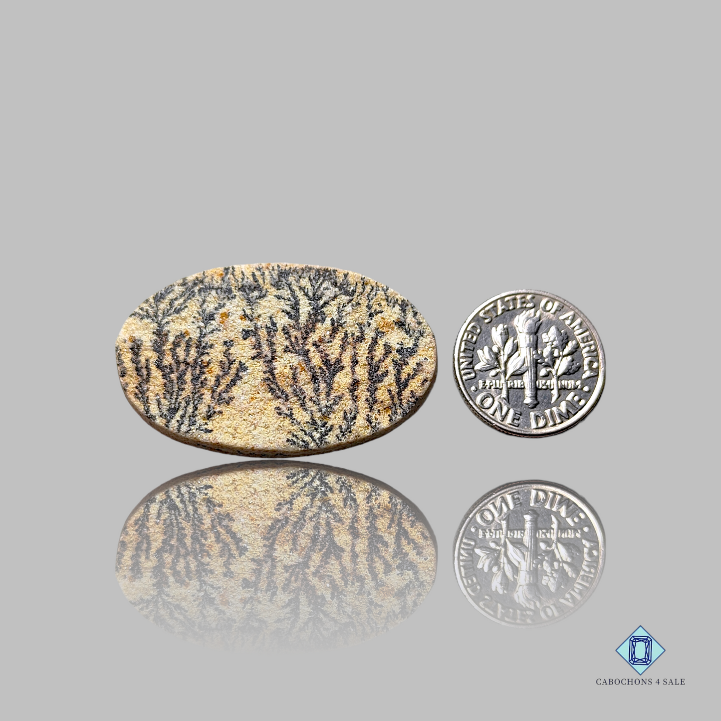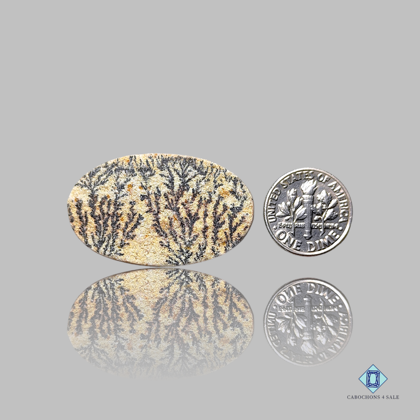 This is a Psilomelane Dendritic Druzy Agate stone. The product is a natural oval-shaped druzy. Psilomelane Dendritic Druzy Agate in yellow color with the approx size of 35-40mm. Clarity of This Piece is druzy. The Product is sold as pictured: 1pc oval druzy for the Price Listed.