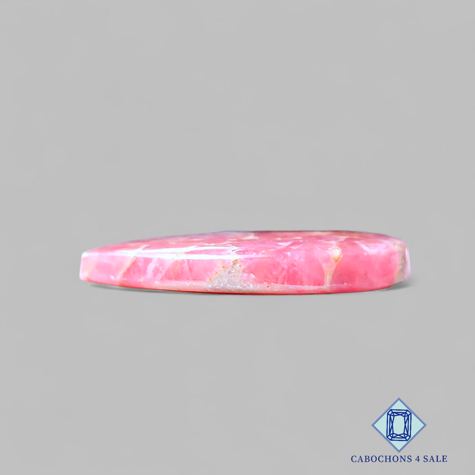 Swipe images to see stone with Dimension chart. This is a Rhodochrosite gemstone. The Product is a natural , Pear, Opaque. Rhodochrosite gemstone in Pink color with the  size of 41*33*5mm. Clarity of this Rhodochrosite Piece is  Opaque. The Product is available exactly same shown in the picture: 1 piece Pear Cabochons Rhodochrosite certified for the price listed above.