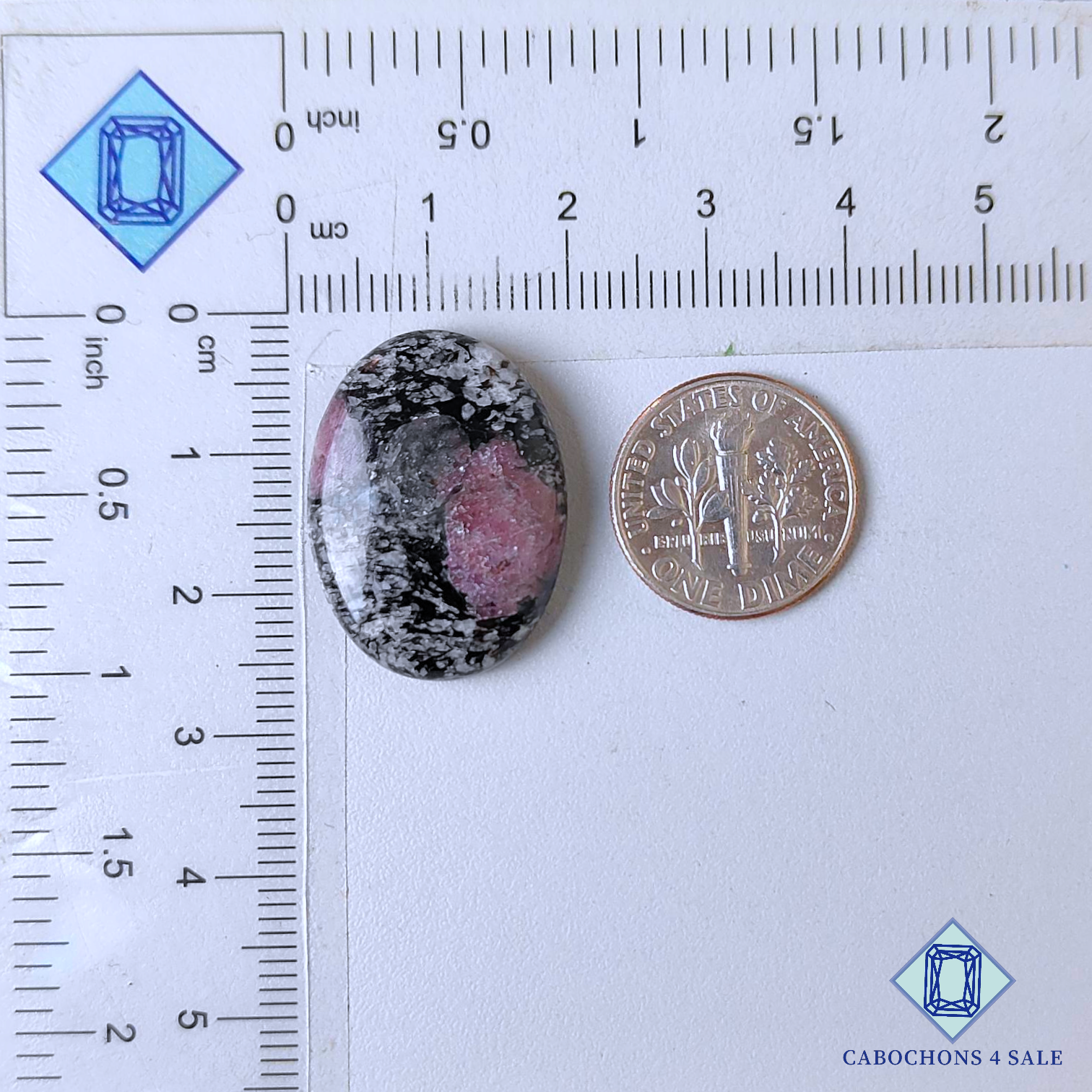 Swipe images to see stone with Dimension chart. This is a Ruby Fall Jasper gemstone. The Product is a natural , Oval, Opaque. Ruby Fall Jasper gemstone in Black color with the size of 25*18*5mm. Clarity of this Ruby Fall Jasper Piece is Opaque. The Product is available exactly same shown in the picture: 1 piece Oval Cabochons Ruby Fall Jasper certified for the price listed above.