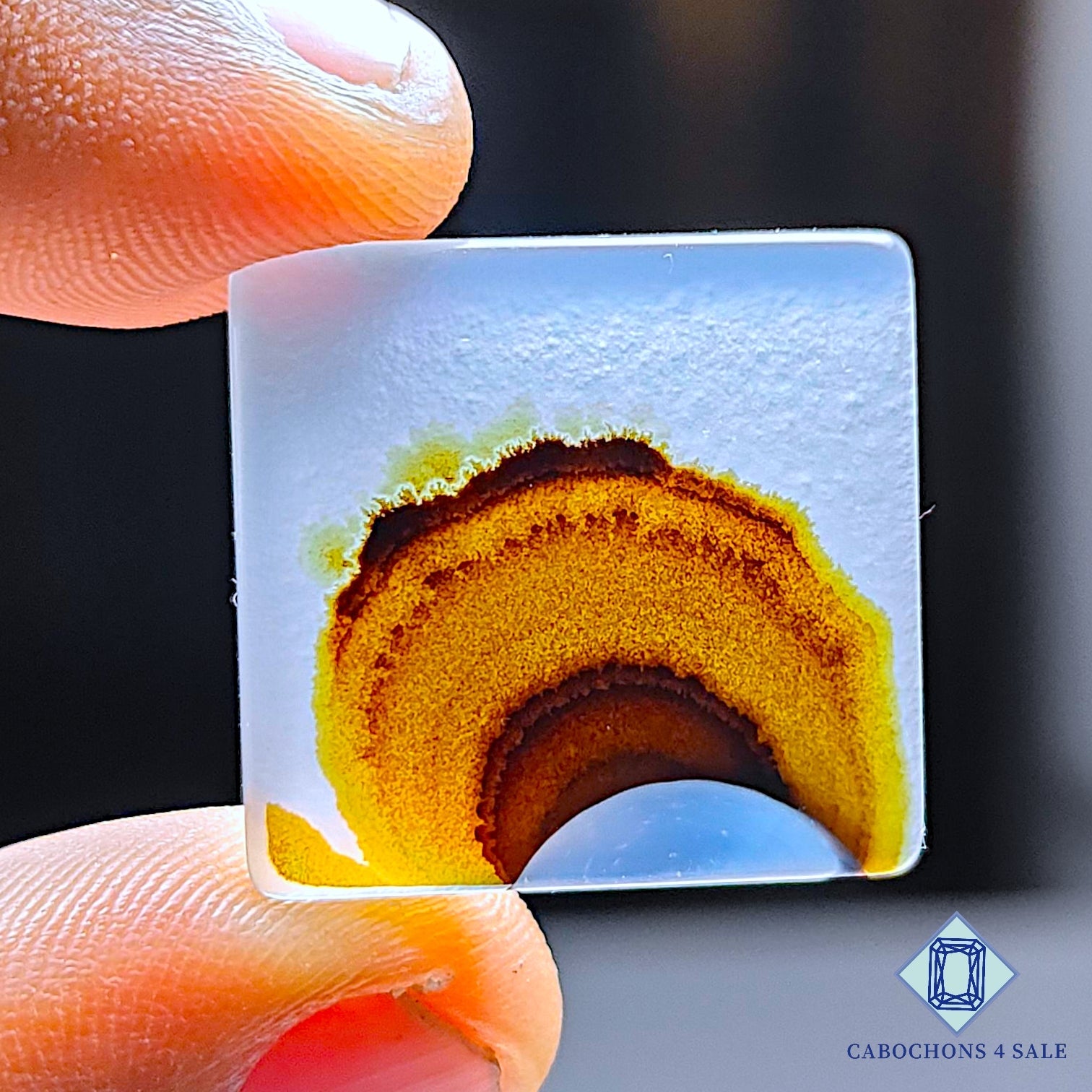Swipe images to see stone with Dimension chart. This is a Scenic Agate gemstone. The Product is a natural , Fancy, Translucent. Scenic Agate gemstone in Yellow color with the size of 22*21*3mm. Clarity of this Scenic Agate Piece is Translucent. The Product is available exactly same shown in the picture: 1 piece Fancy Cabochons Scenic Agate certified for the price listed above.