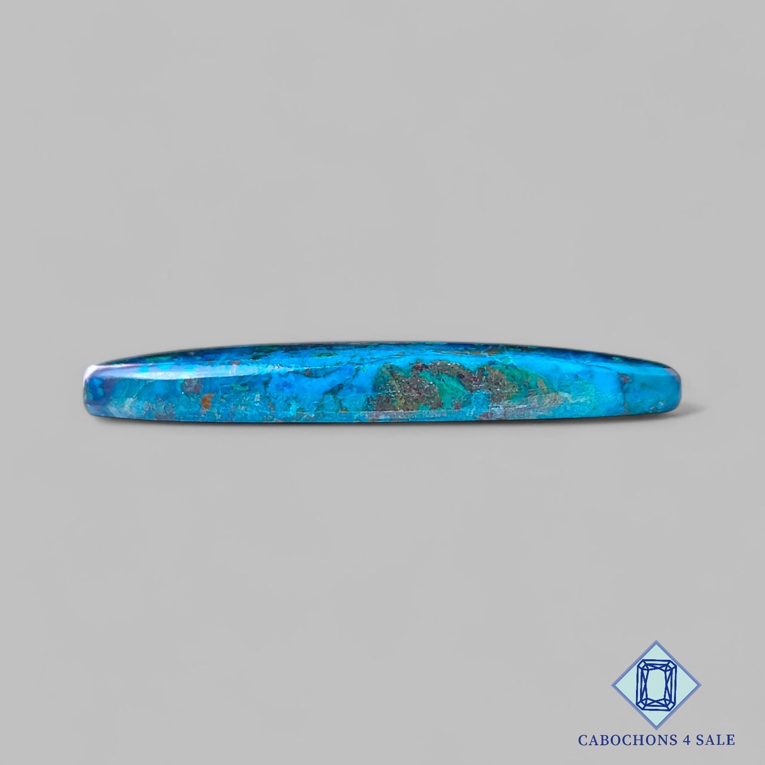 Swipe images to see stone with Dimension chart. This is a Shattuckite gemstone. The Product is a natural , Oval, Opaque. Shattuckite gemstone in Blue color with the size of 44*11*5mm. Clarity of this Shattuckite Piece is Opaque. The Product is available exactly same shown in the picture: 1 piece Oval Cabochons Shattuckite certified for the price listed above.