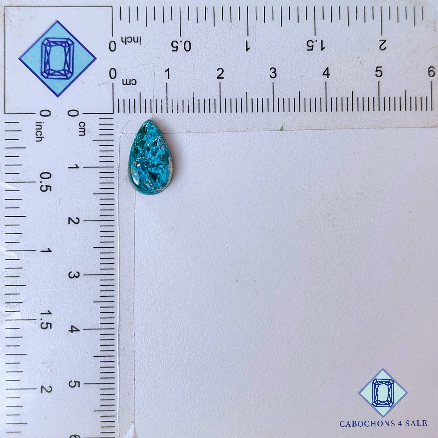 Swipe images to see stone with Dimension chart. This is a Shattuckite gemstone. The Product is a natural , Pear, Opaque. Shattuckite gemstone in Blue color with the size of 14*8*3mm. Clarity of this Shattuckite Piece is Opaque. The Product is available exactly same shown in the picture: 1 piece Pear Cabochons Shattuckite certified for the price listed above.