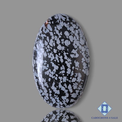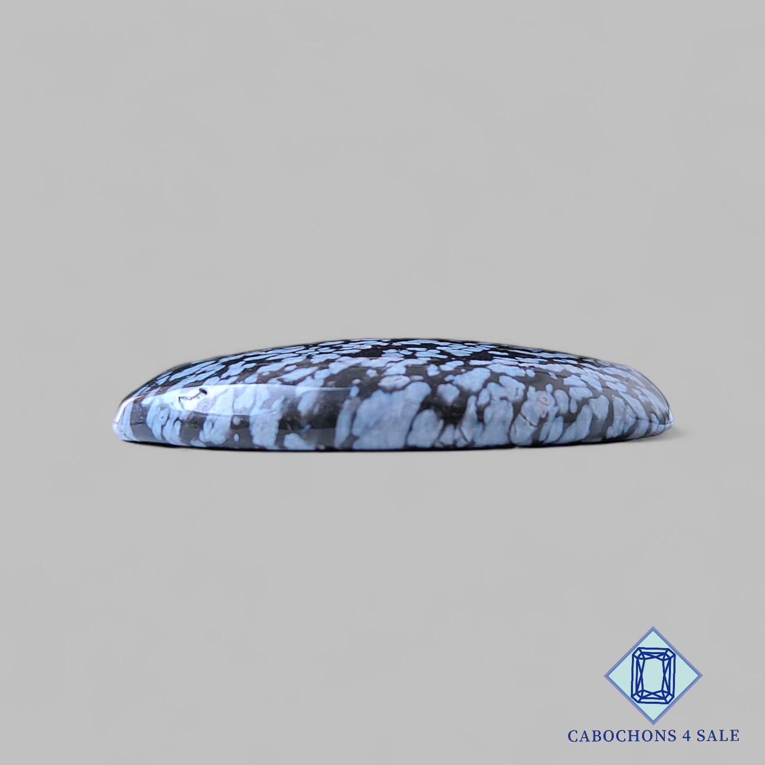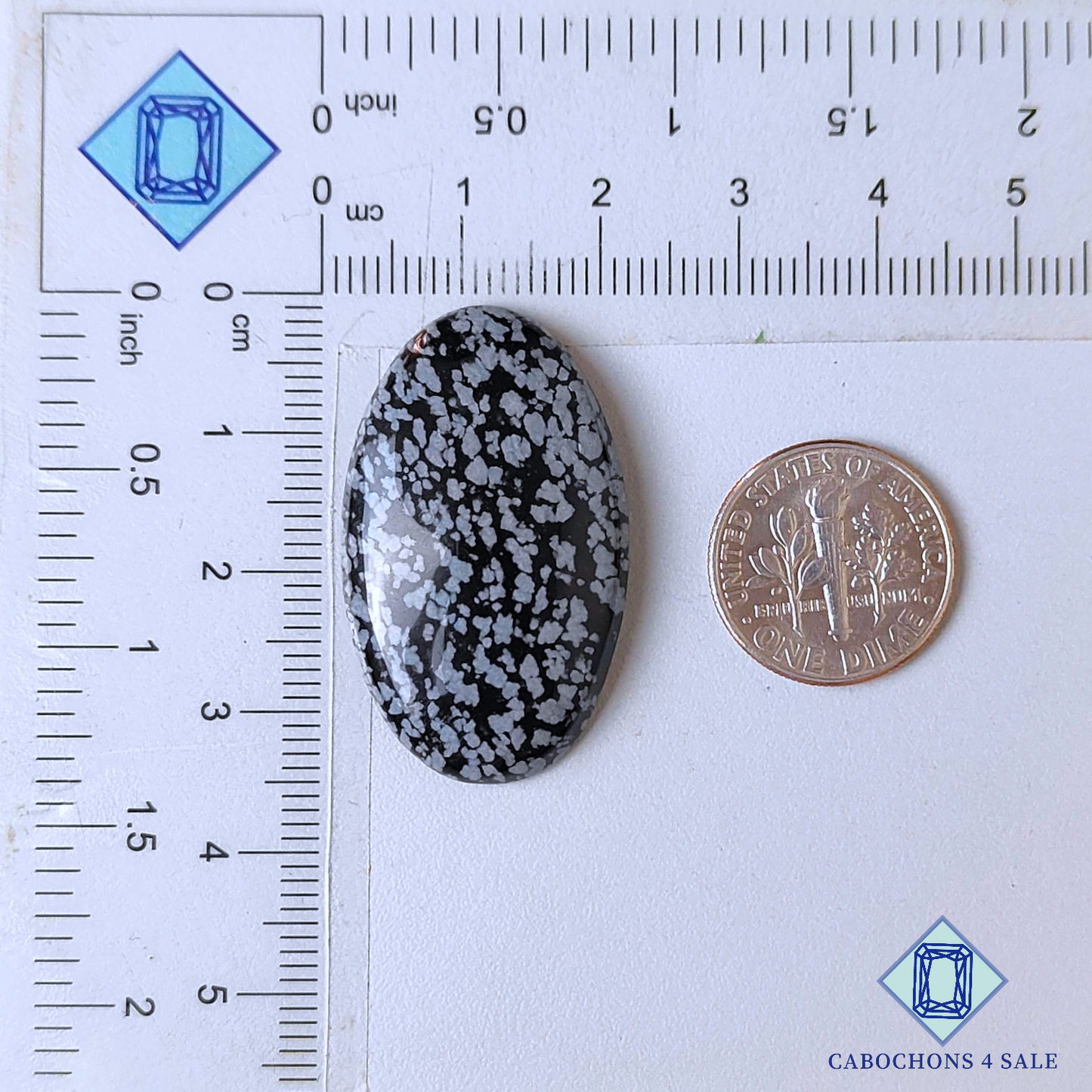 Swipe images to see stone with Dimension chart. This is a Snowflake Obsidian gemstone. The Product is a natural , Oval, Opaque. Snowflake Obsidian gemstone in Black color with the size of 34*20*5mm. Clarity of this Snowflake Obsidian Piece is Opaque. The Product is available exactly same shown in the picture: 1 piece Oval Cabochons Snowflake Obsidian certified for the price listed above.