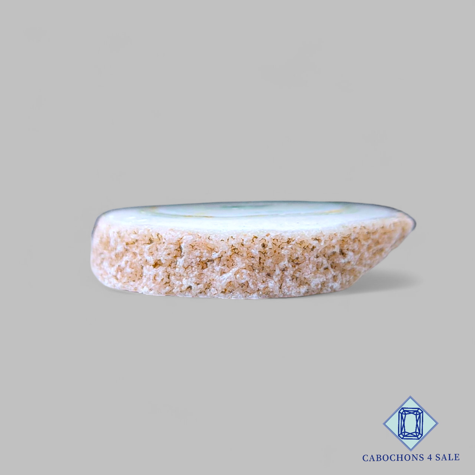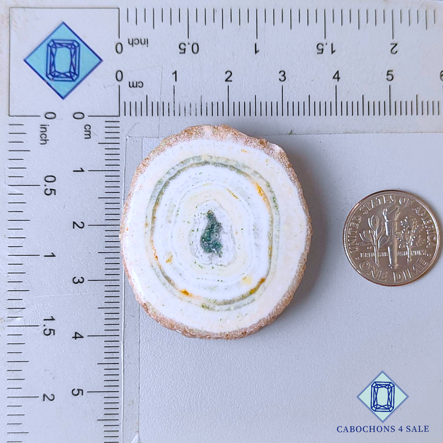 Swipe images to see stone with Dimension chart. This is a Solar Quartz gemstone. The Product is a natural , Round, Opaque. Solar Quartz gemstone in White color with the  size of 38*34*7mm. Clarity of this Solar Quartz Piece is  Opaque. The Product is available exactly same shown in the picture: 1 piece Round Druzy Solar Quartz certified for the price listed above.
