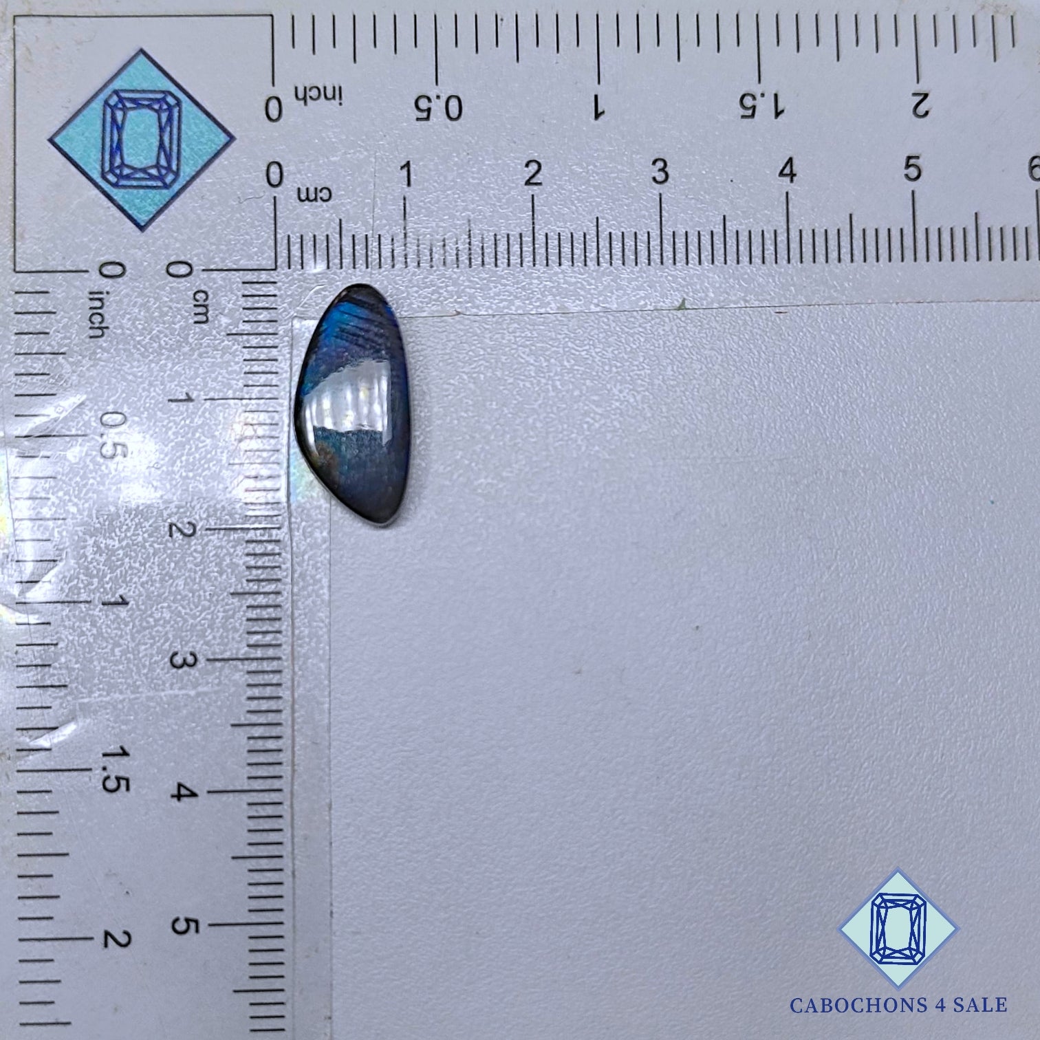 Swipe images to see stone with Dimension chart. This is a Spectrolite gemstone. The Product is a natural , Fancy, Translucent. Spectrolite gemstone in Blue color with the  size of 18*9*4mm. Clarity of this Spectrolite Piece is  Translucent. The Product is available exactly same shown in the picture: 1 piece Fancy Cabochons Spectrolite certified for the price listed above.