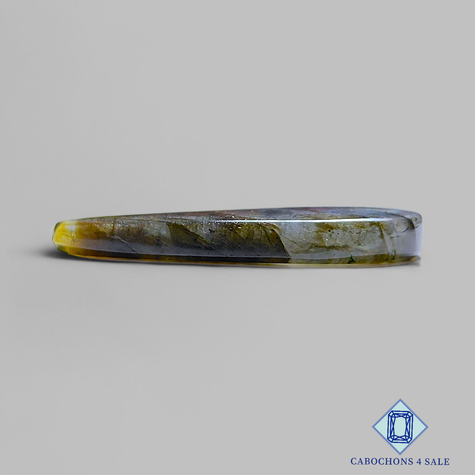 Swipe images to see stone with Dimension chart. This is a Spectrolite gemstone. The Product is a natural, Pear, Translucent. Spectrolite gemstone in Purple color with the size of 49*18*6mm. Clarity of this Spectrolite Piece is Translucent. The Product is available exactly same shown in the picture: 1 piece Pear Cabochons Spectrolite certified for the price listed above.