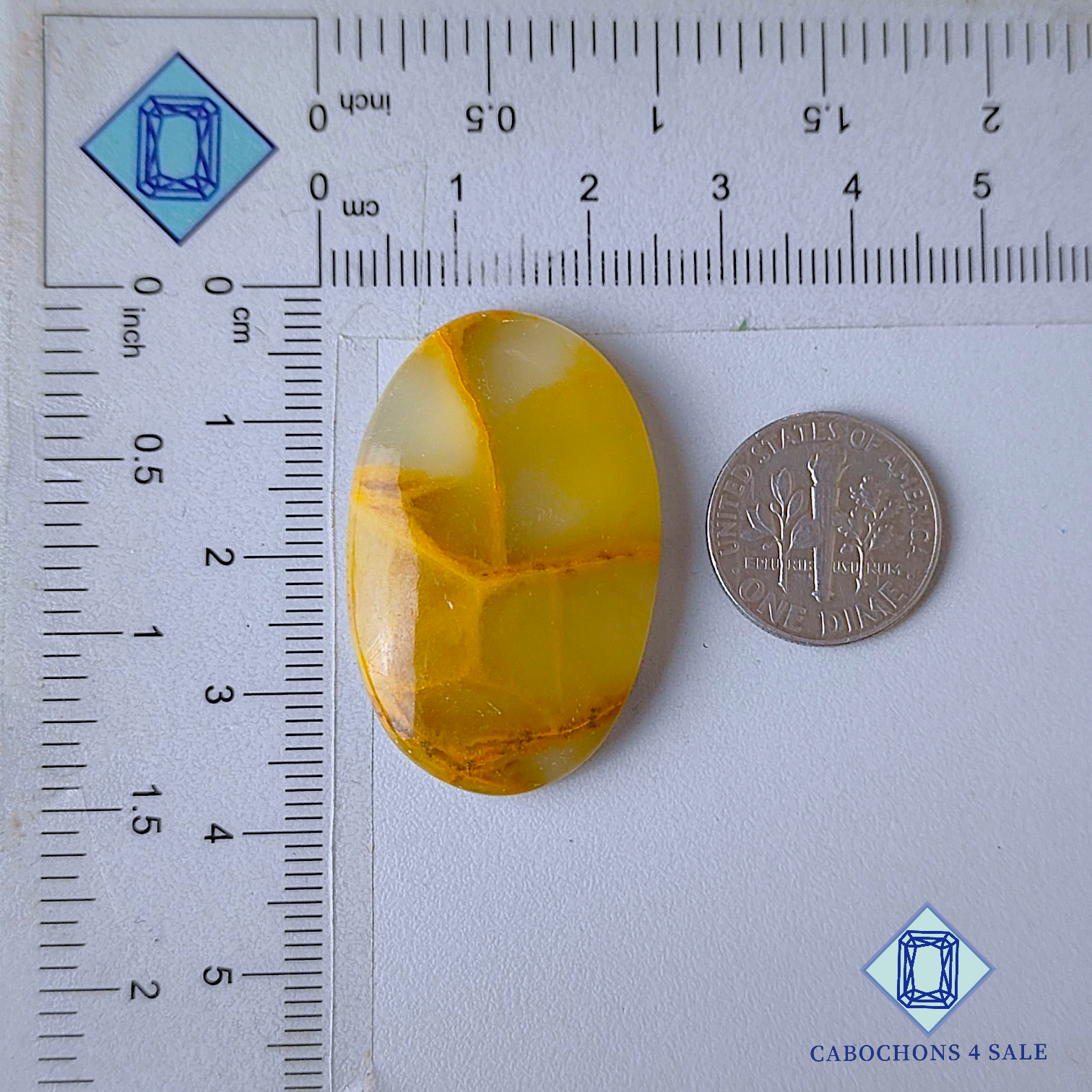 Swipe images to see stone with Dimension chart. This is a Spider Web Jasper gemstone. The Product is a natural , Oval, Translucent. Spider Web Jasper gemstone in Yellow color with the size of 35*23*6mm. Clarity of this Spider Web Jasper Piece is Translucent. The Product is available exactly same shown in the picture: 1 piece Oval Cabochons Spider Web Jasper certified for the price listed above.