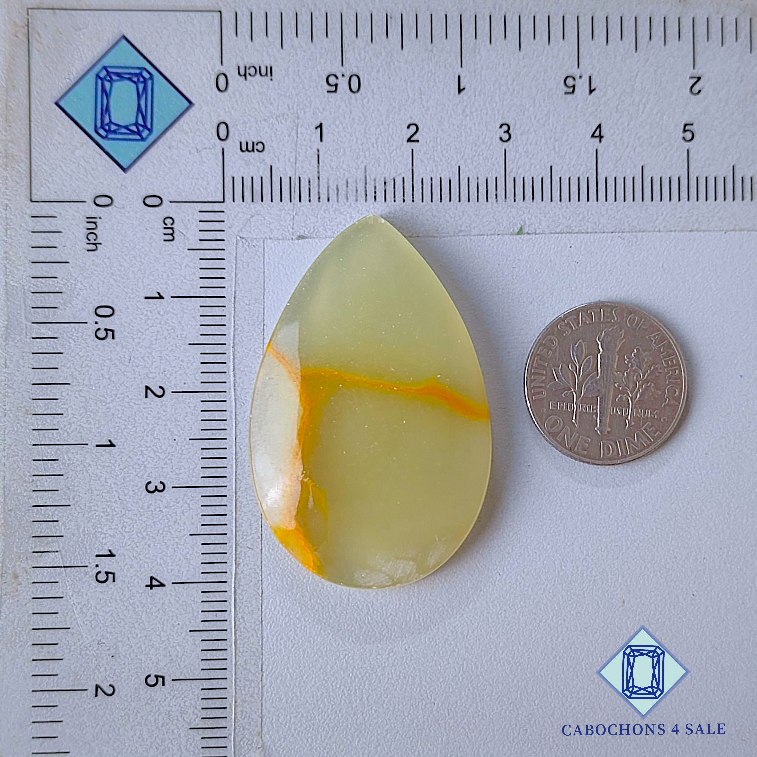 Swipe images to see stone with Dimension chart. This is a Spider Web Jasper gemstone. The Product is a natural , Pear, Translucent. Spider Web Jasper gemstone in Yellow color with the size of 39*25*5mm. Clarity of this Spider Web Jasper Piece is Translucent. The Product is available exactly same shown in the picture: 1 piece Pear Cabochons Spider Web Jasper certified for the price listed above.