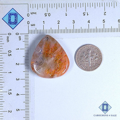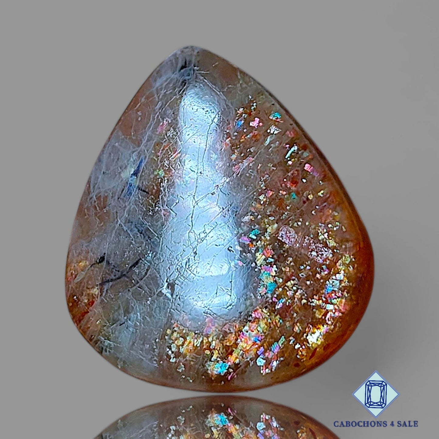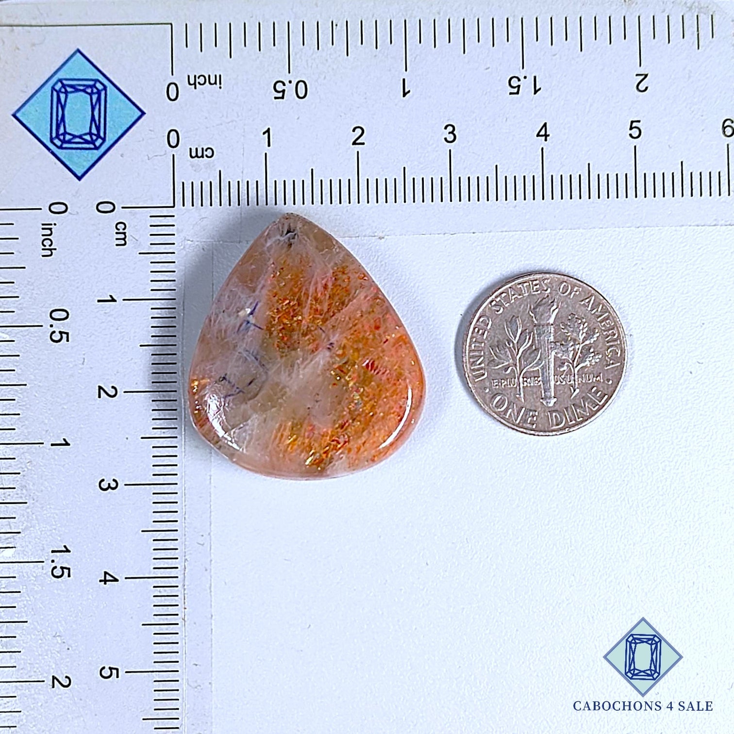Swipe images to see stone with Dimension chart. This is a Tanzanian Confetti Sunstone gemstone. The Product is a natural, Pear, Translucent. Tanzanian Confetti Sunstone gemstone in Brown color with the size of 28*25*7mm. Clarity of this Tanzanian Confetti Sunstone Piece is Translucent. The Product is available exactly same shown in the picture: 1 piece Pear Cabochons Tanzanian Confetti Sunstone certified for the price listed above.
