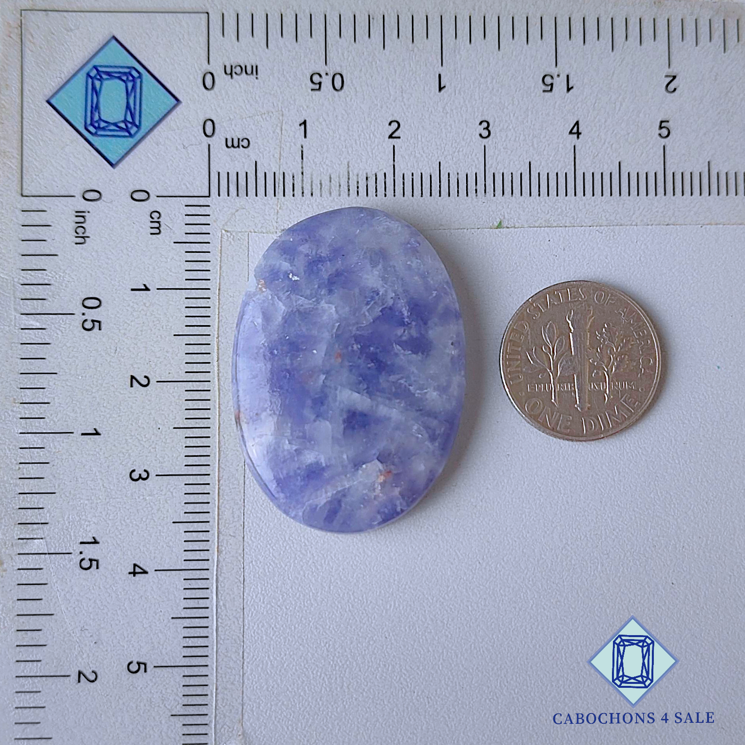 Swipe images to see stone with Dimension chart. This is a Unicorn Lepidolite gemstone. The Product is a natural , Oval, Translucent. Unicorn Lepidolite gemstone in Blue color with the  size of 35*25*5mm. Clarity of this Unicorn Lepidolite Piece is  Translucent. The Product is available exactly same shown in the picture: 1 piece Oval Cabochons Unicorn Lepidolite certified for the price listed above.